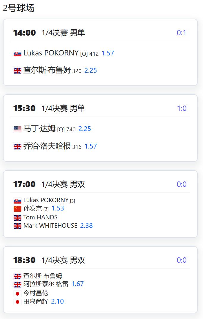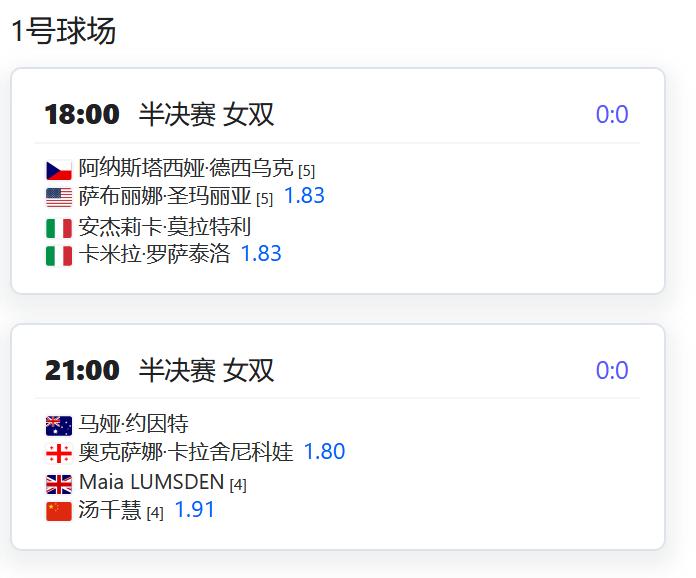 今日赛程: 2025法国网球公开赛资格赛第二轮受雨水影响部分比赛推迟到今天进行,其中就包括王曦雨和张帅两位中国球员的比赛,补赛被安排在12球场的第二场和第四场进行。 WTA250赛拉巴特站,汤千慧/卢姆斯登将与约因特/卡拉什尼科娃争夺一个女双决赛席位; 塞尔维亚W75,高馨妤将在女单第二轮对阵一名马耳他球员; CH50第比利斯,孙发京组合将在男双四分之一决赛对阵一对英国组合; W50佩勒姆,米兰组合将在女双四分之一决赛对阵头号种子。