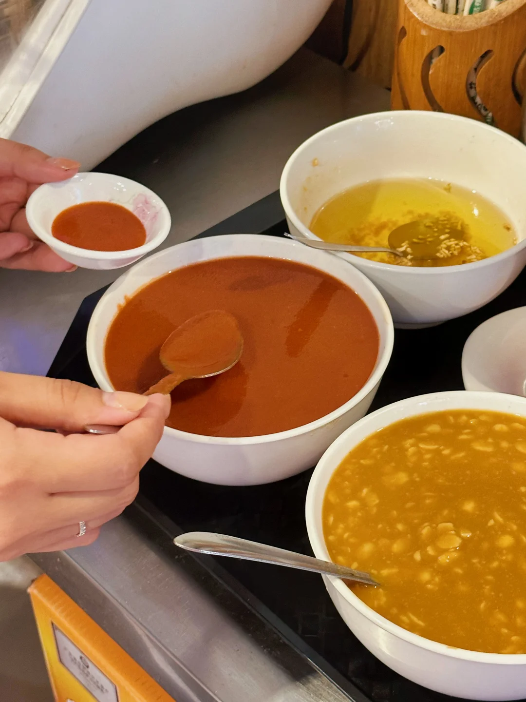 一些熟客进门不用看菜单 一句鱼片粥/鱼腩粥/····师傅便默契地舀一勺粥 码一层鱼片 然后淋一勺灵魂南姜末酱油 辛辣与咸鲜碰撞 鲜味直冲天灵盖!