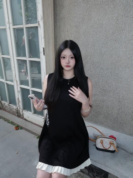 一套miu里miu气的孕妇装 黑色真的太简约大气了 是产后也能继续穿的小裙子