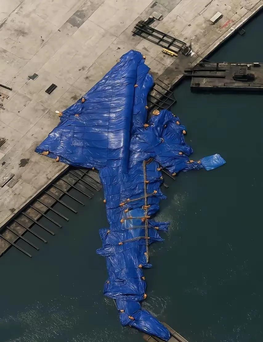 朝鲜侧翻舰船,正在抓紧在大棚布下施工,按照新闻里说,10天之内就要修好,否则一切难以预料。 美国卫星发现,这艘舰船已经用篷布全部盖住,看不到任何外表。 从新闻里的字眼,可以知道很多内容: 一是推翻初期船底出现破洞的判断, 二是没有达到灾难性破坏, 三是主要损伤集中在右舷刮削和船尾, 四是救生通道进水。 由此推荐,水密舱发挥了应有作用,未出现全舰内部被进满海水,并且进水仅从尾部救生通道流入到隔室,可以迅速排出。 修复过程是:首先进行的是抽出浸入在隔室的海水,然后从船台脱离船首部分,修复平衡性需要2至3天,修复舷侧需要10多天时间。 理论上来说,侧滑式相比较于倒退式下水,本身对船只的冲击就比较大,容易引起舰体变形或设备损坏,所以很多关键设备也不会安装,对整艘舰船的设计和建造要求较高。