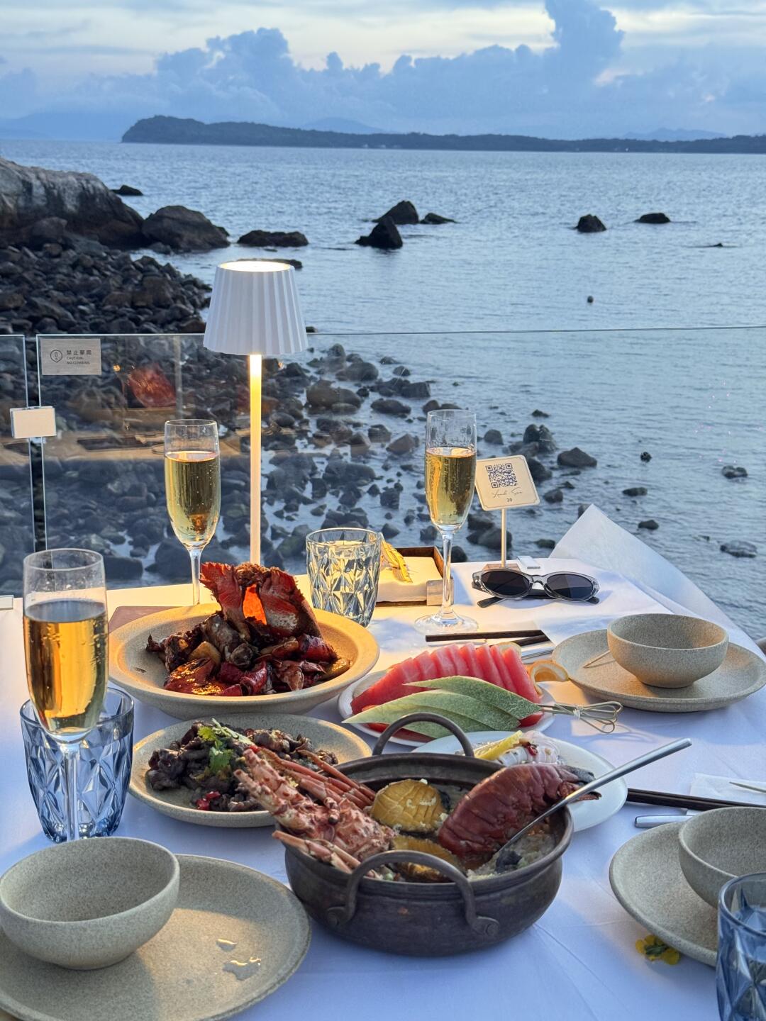 潮汐漫过黄昏六点的餐桌 浪花在礁石上摔碎成盐晶 恍惚听见有人低语 不是我们在看海 是海在凝视所有流逝的光阴 🍽️:Land&Sea 澜栖
