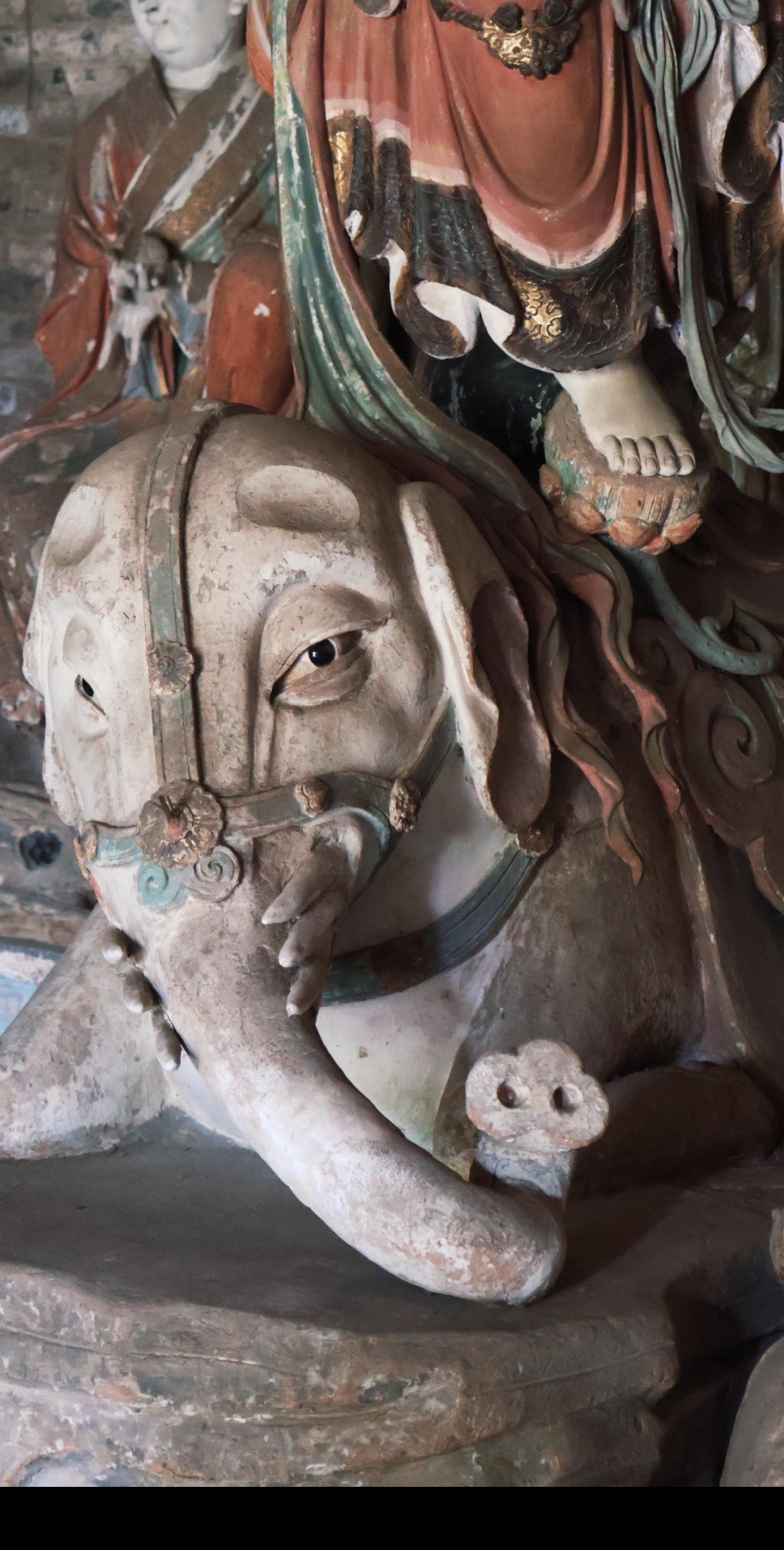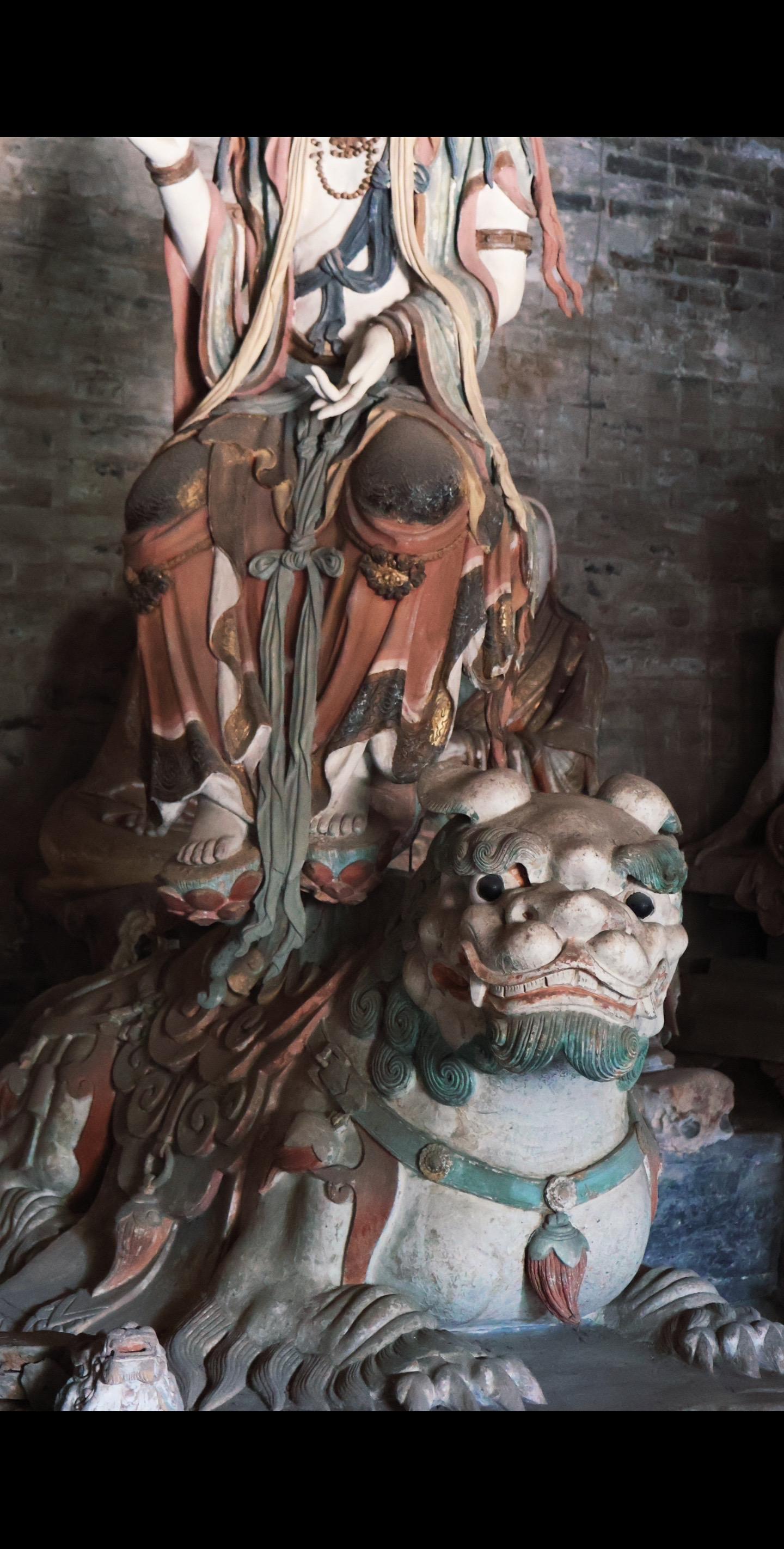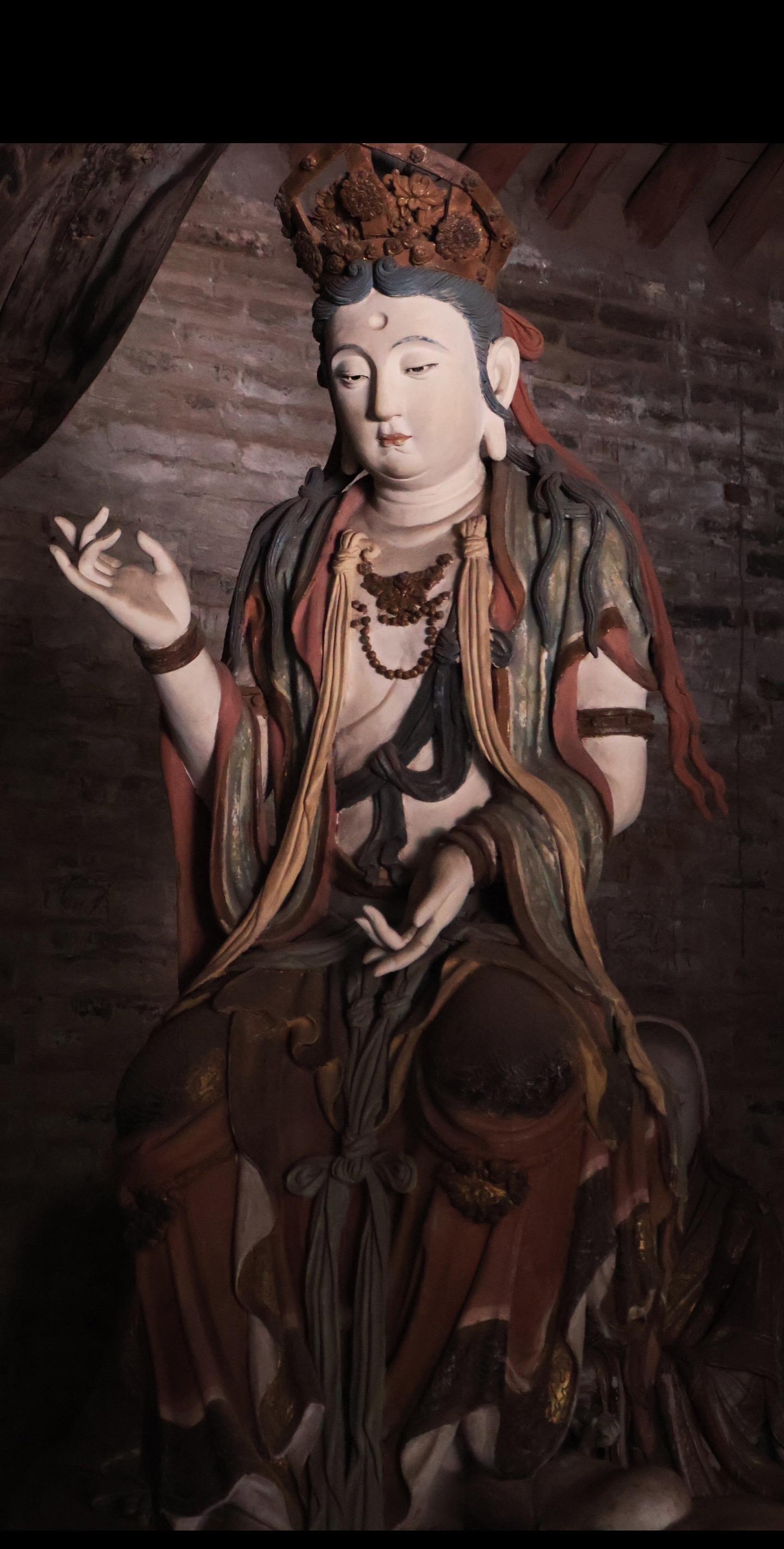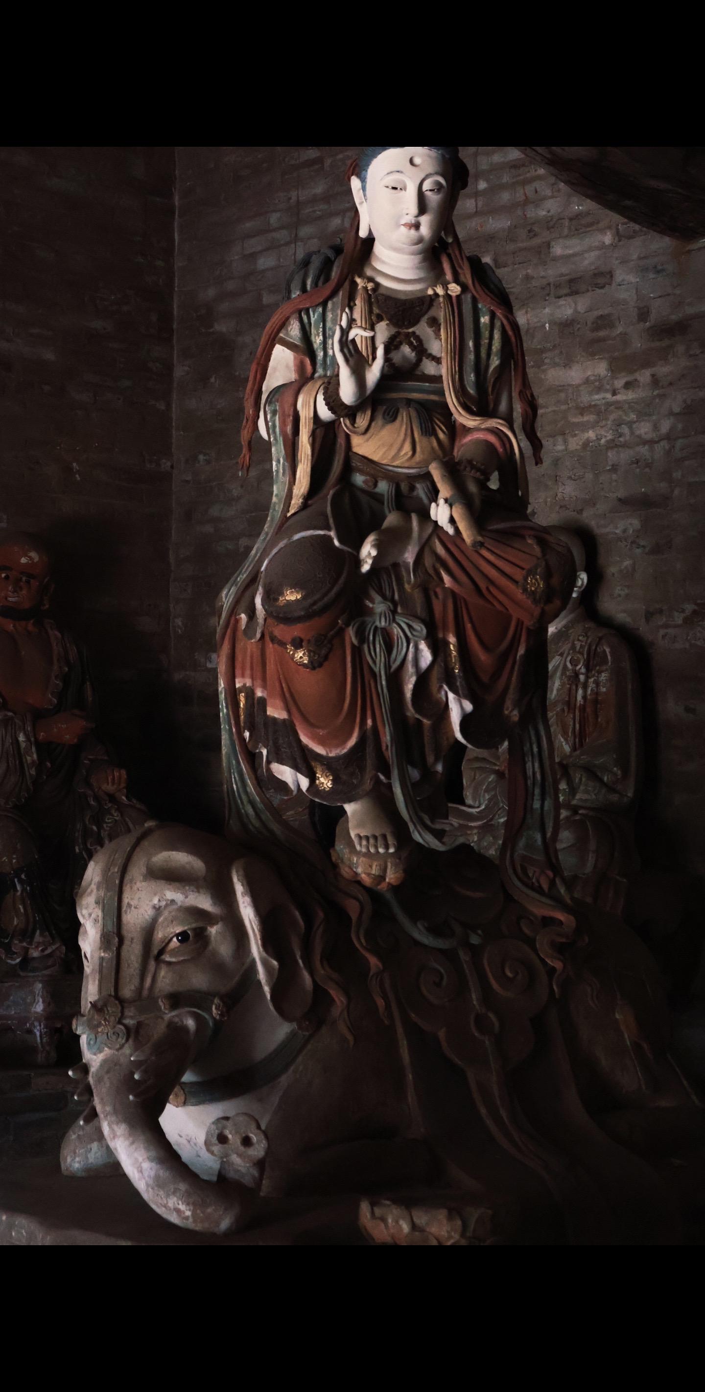 主位三尊观音、文殊、普贤原像损毁严重,皆由史延春先生修复。修复后的造像“修旧如旧”延续宋代特征,如观音的“自在坐”姿态、文殊的狮子座、普贤的六牙白象,均符合