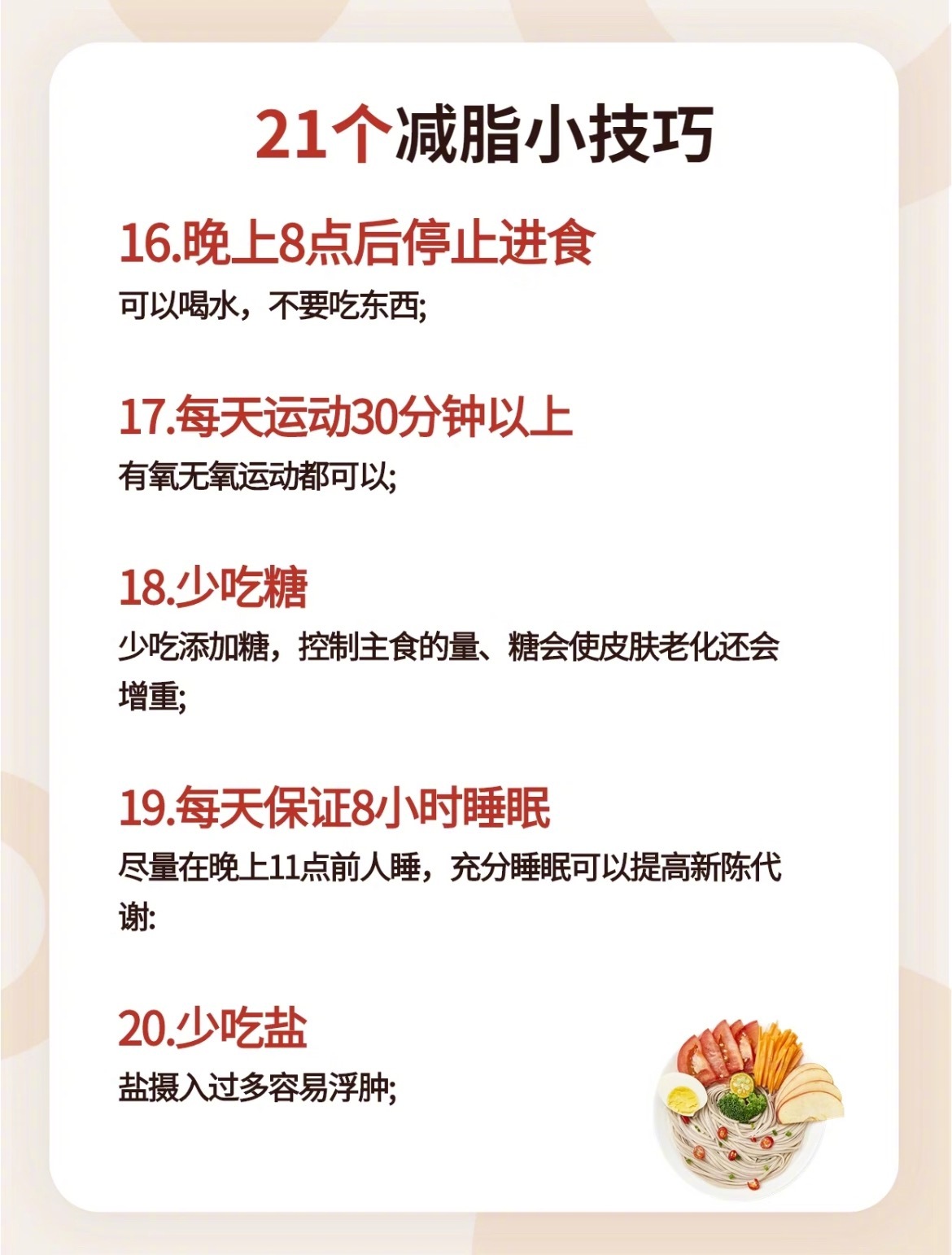 减重先减脂,这是定律。所以一定要有好的不吃力的方法,才能让你的体重轻松减下来。分享21个减脂小技巧,对减脂期的你一定有用!