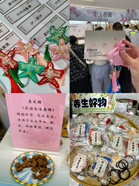 端午逛商场偶遇了养生市集 很多摊位不仅送香包,还可以自己动手做香包哟!被送了一堆,真的好好玩~
