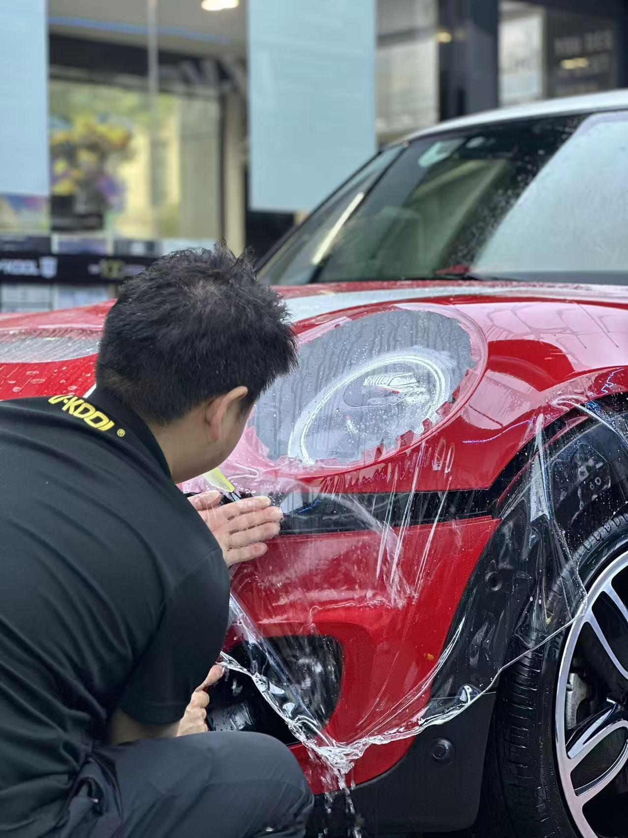 我非常看重施工的专业性。一个好的施工环境至关重要——店内的专业照明、精细化的施工设备,以及技师的专业素养,都直接影响最终的贴合完美度。尤其是对于我这台拥有定制拉花、大灯、前后Logo等细节较多的车身,边角处理尤为考验功力。最终呈现的效果,确实令人满意。