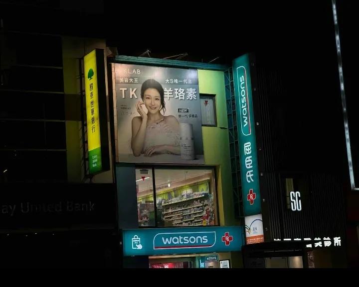 这是大S离婚后复出的第一个广告,在台北市中心的街道! 台北好多地方都有她的巨幅广告,就是弄不明白,她的粉丝都期待她直播,可她为什么不出来直播呢?大S的风采依旧
