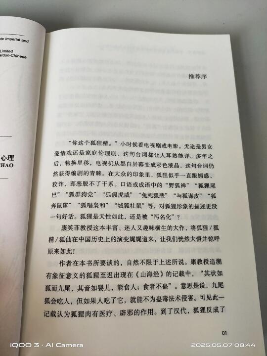 [一R][私信R]再看到作者康笑菲在《狐仙崇拜》第四章P134中提到的案例, 官员无奈让病重妻子服下狐精给予的丹药而痊愈,这个奇迹是他意料不到的。随后与狐精就前朝之事求教,又满足了他期许的答案。狐精在治疗、传授上都令官员折服,他的怀疑态度就开始转向包容。