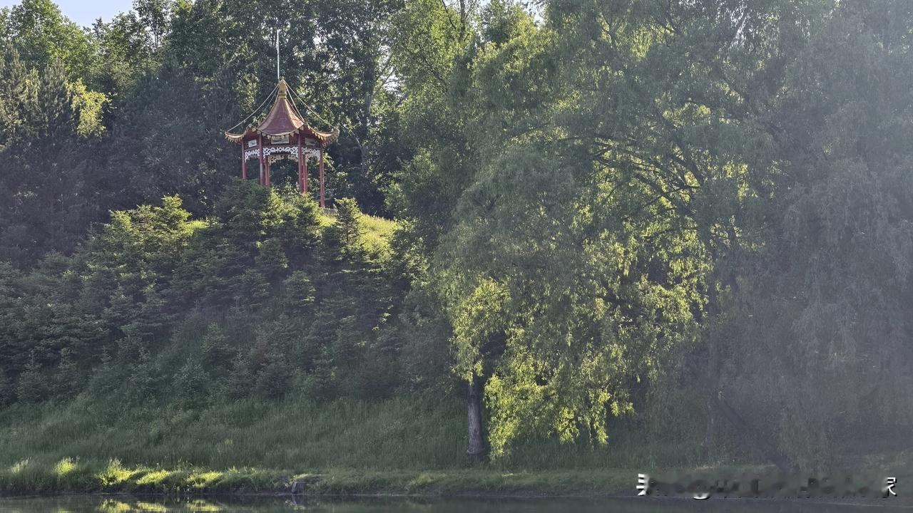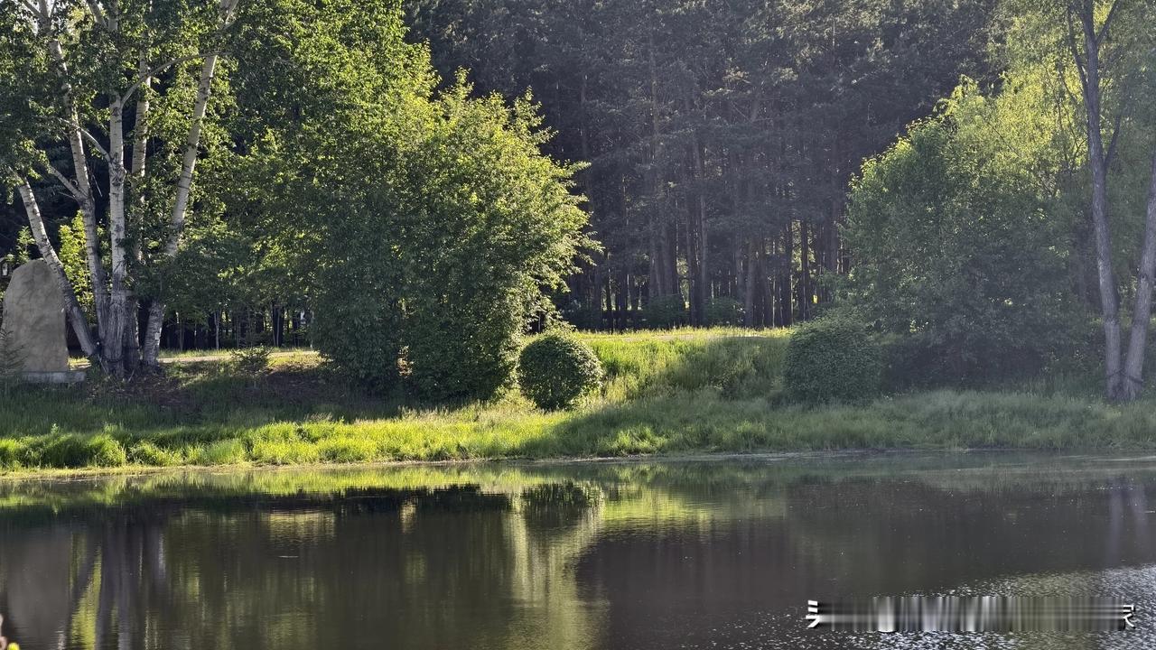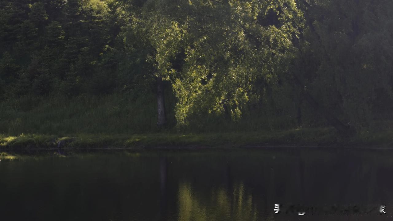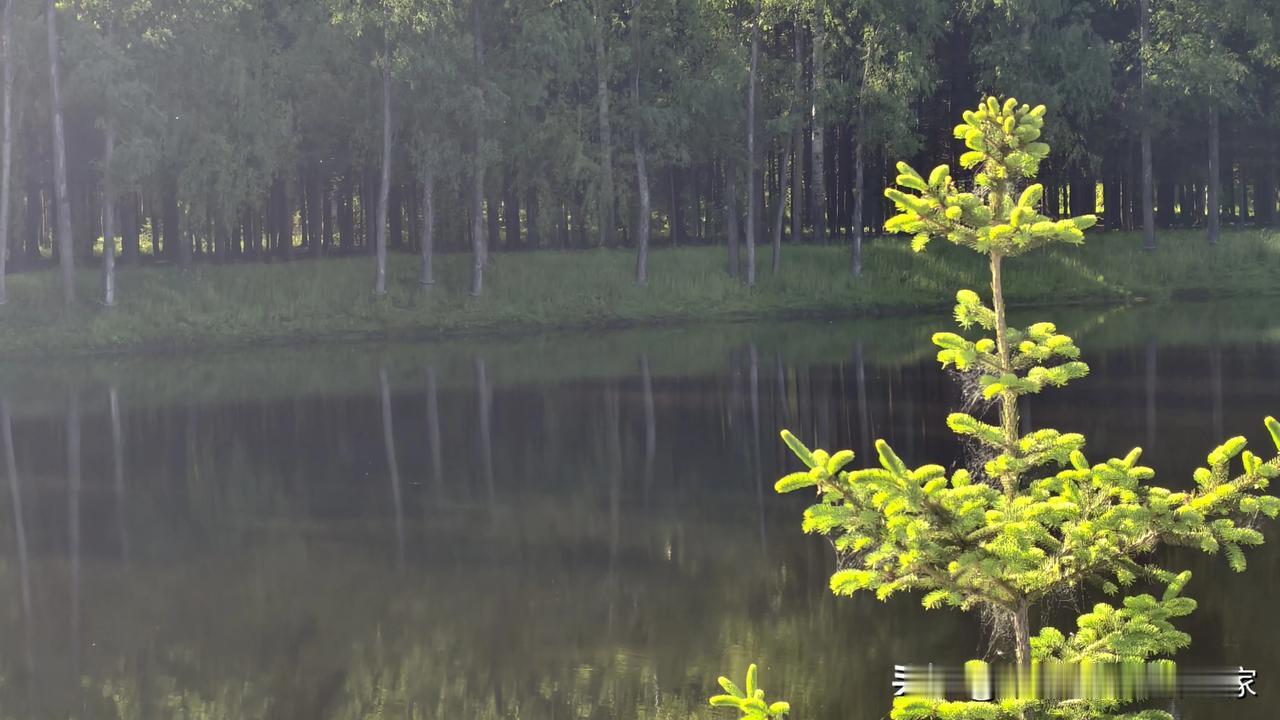 大兴安岭,晨雾缭绕,静谧湖面倒映着远山与绿树,宛如世外桃源。