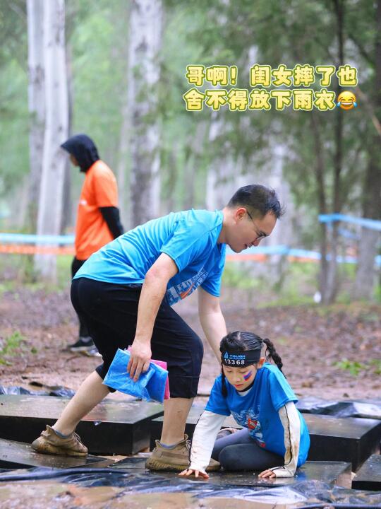 与其说是挑战,不如说是一场亲子之间的互相救赎,我们有坚持到底的决心,可是雨中闯关又是困难重重,咬牙坚持,突破自我,最后到达终点,真的很骄傲!又有点小感动💗💗💗