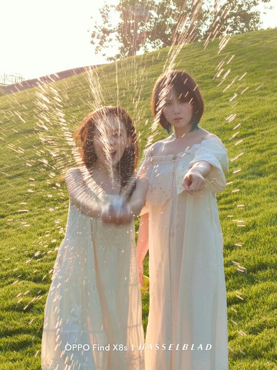 不管是草地逆光、喷泉特写,还是随性互动,Find X8s都能把「日常」拍成「电影截帧」: