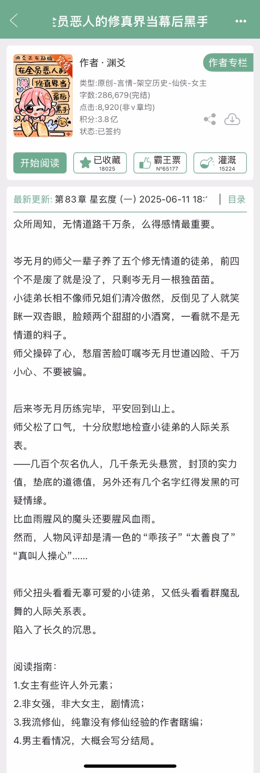渊爻的《在全员恶人的修真界当幕后黑手》完结啦!万人迷女主,女主有点人外元素~