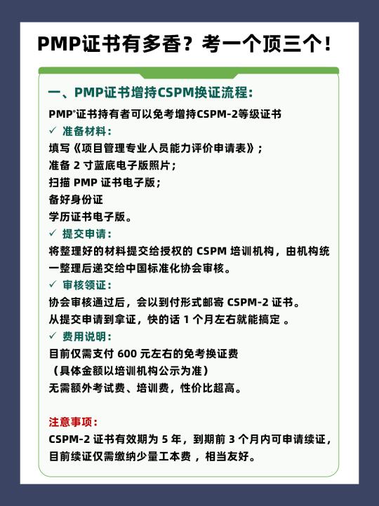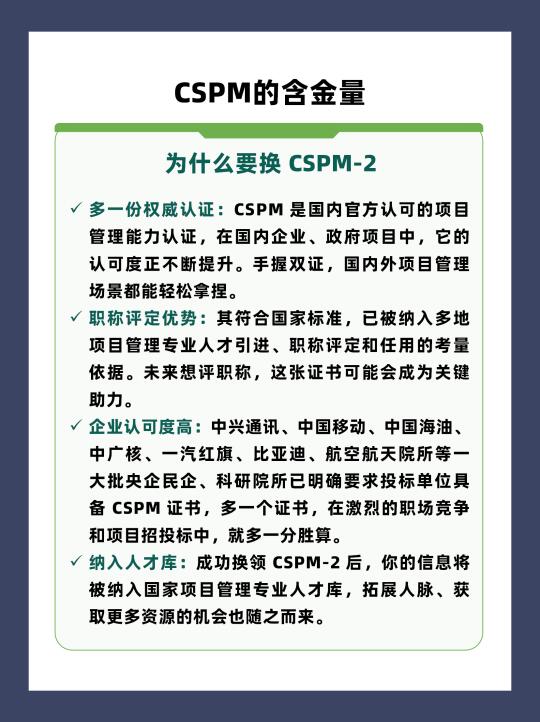 持有PMP证书可增持CSPM证,直接换取CSPM认证,CSPM-2,CSPM-3,CSPM-4等