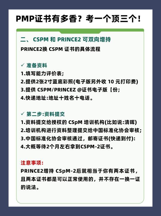 CSPM和PRINCE2可双向增持,这个证书再国内也是有含金量的。