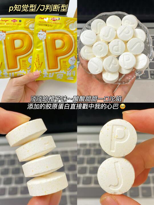 ✅p知觉型/J判断型:益生菌压片糖。淡淡的橙子味~酸酸甜甜一口沦陷,添加的胶原蛋白直接戳中我的心巴🥹