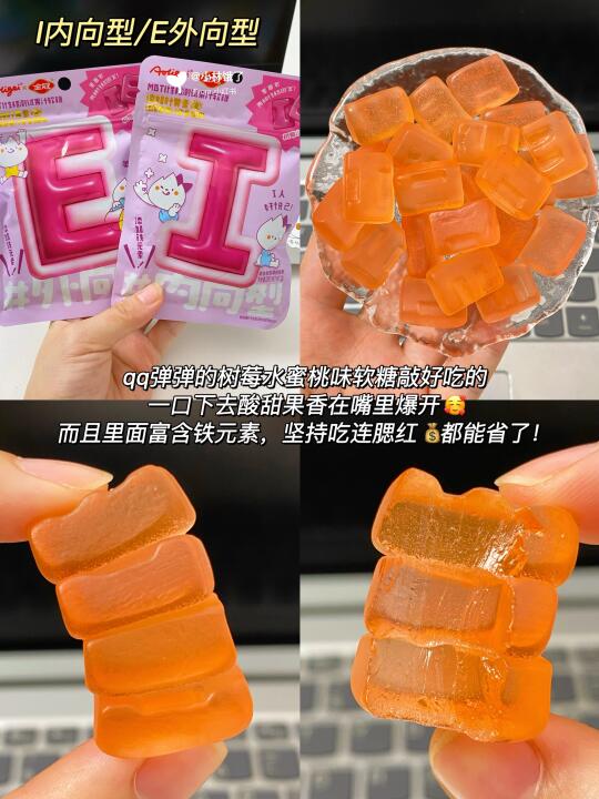 ✅I内向型/E外向型:qq弹弹的树莓水蜜桃味软糖敲好吃的,一口下去酸甜果香在嘴里爆开🥰