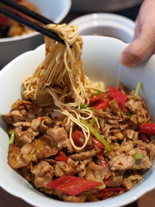 黑犬在李公堤新开的复古面馆 颇有老上海的韵味 老灶萍乡小炒肉拌面超有味 现炒的浇头料很足 铺在面上满满当当 香茅罗勒梅肉粒香料味儿浓郁 配面吃也很和谐 闷热的夏季适合喝冷萃茶 配上一份手作糕点超惬意 可以发呆聊天拍照度过一个闷热的梅雨天