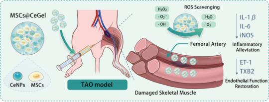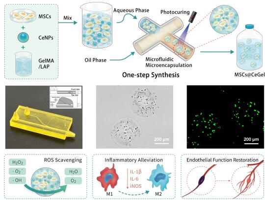 来自上硅所的研究团队开发了一个协同治疗平台——负载氧化铈纳米颗粒(CeNPs)的甲基丙烯酸明胶(GelMA)的水凝胶微球(CeGel),用于间充质干细胞(MSCs)的递送以治疗血栓闭塞性脉管炎(TAO)。
