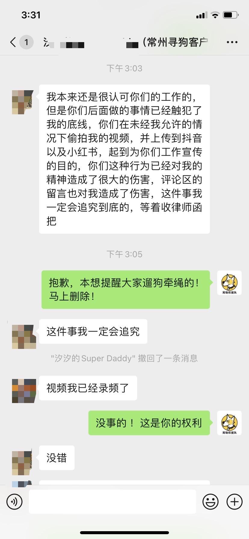最近帮找狗遇到大无语事件,常州泰迪走失四天,主人对比多家后选了我们,团队顶着烈日排查半天,发现狗狗不幸被车碾压去了汪星球...我们按签好的合同收出勤费(写得明明白白无论结果都收费),结果主人转头要退钱!更冤的是,队员拍视频是想提醒大家遛狗牵绳,被指侵权要起诉,视频秒删+道歉还没完...