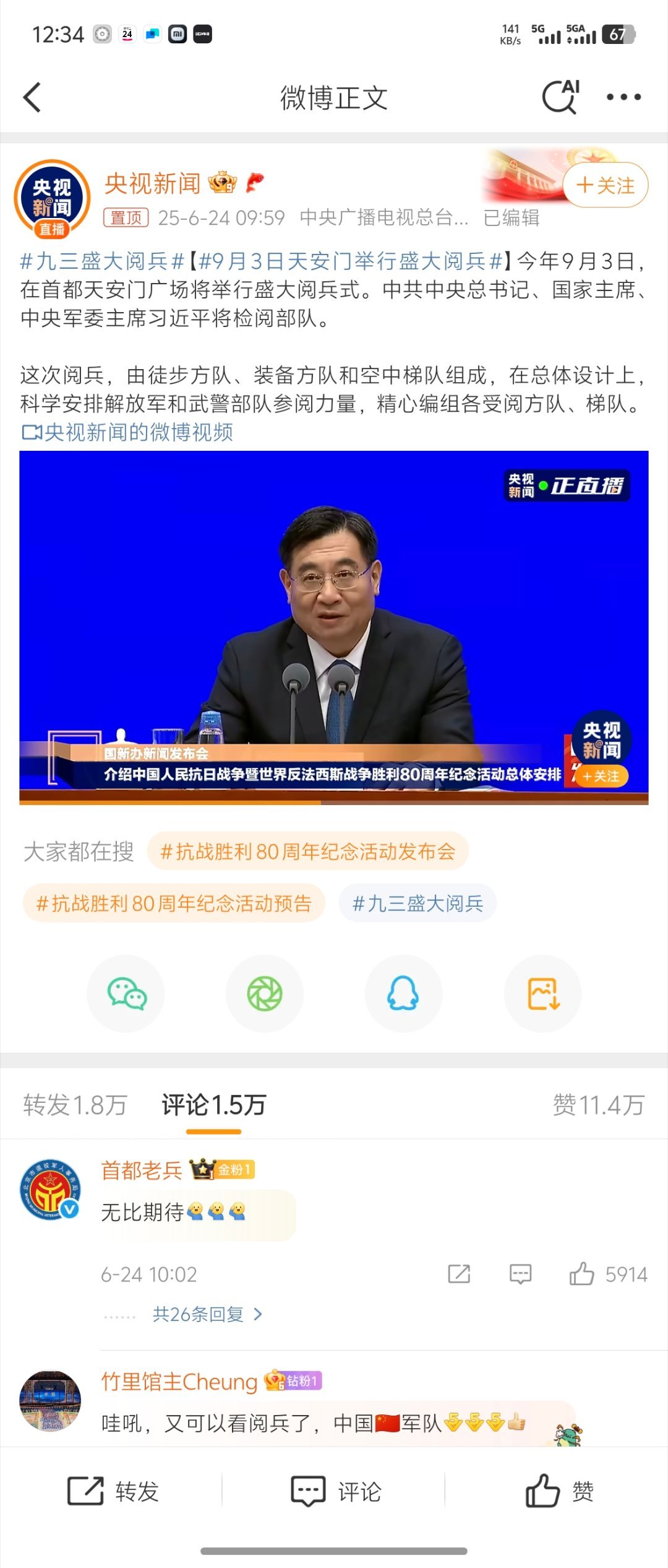九三盛大阅兵希望我们国家的军队,