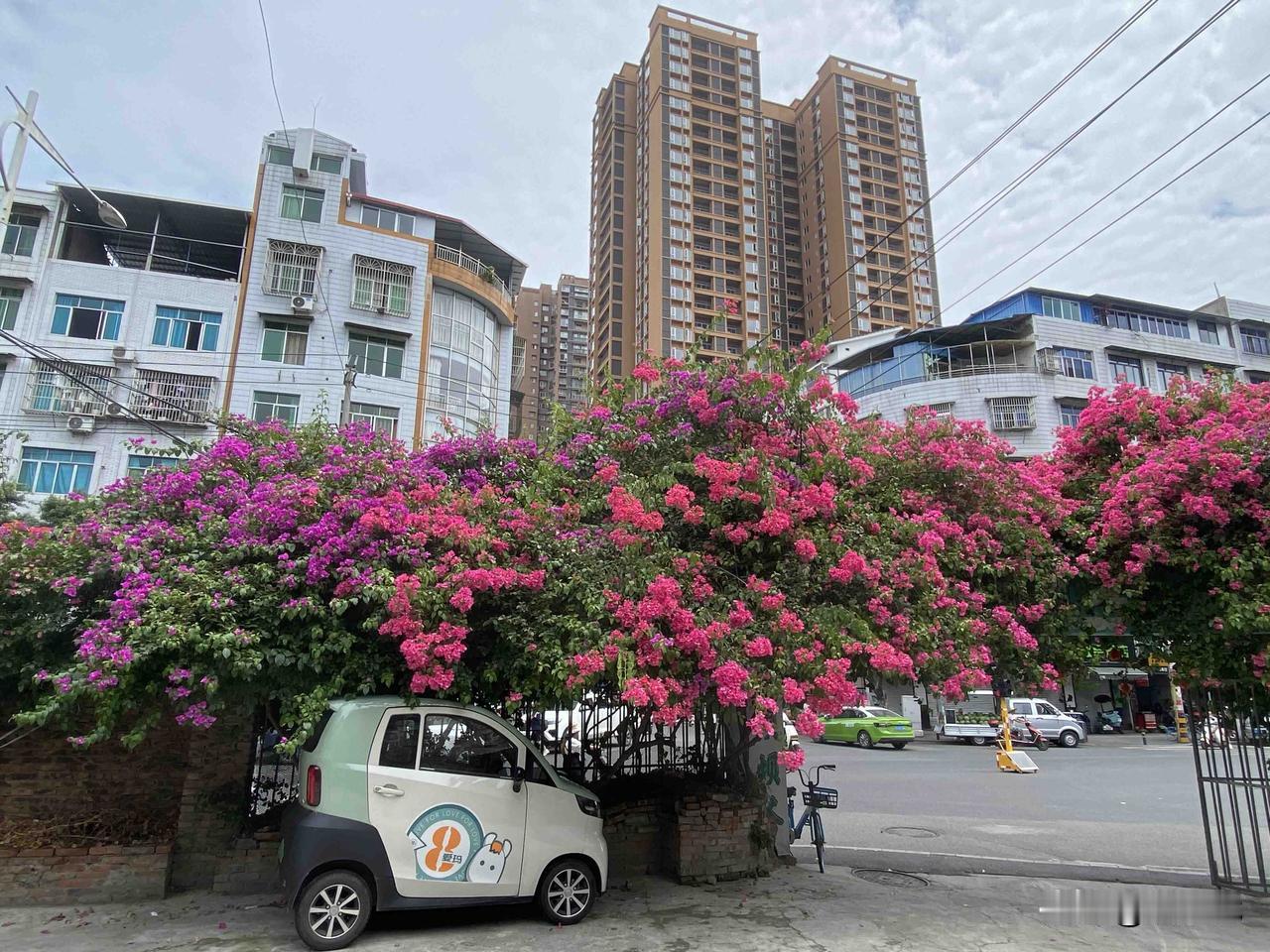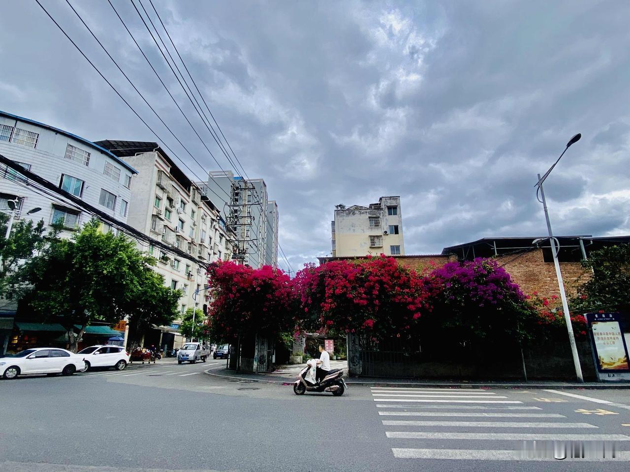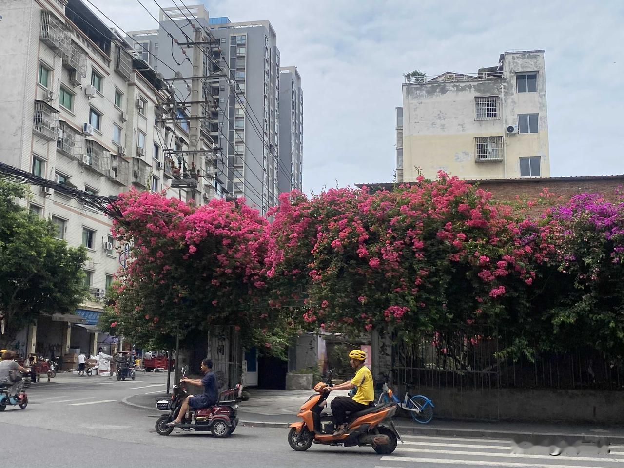 射洪紫薇街和太空路十字路口的张家院子,大门口有几株三角梅,感觉每个月都要爆花一次
