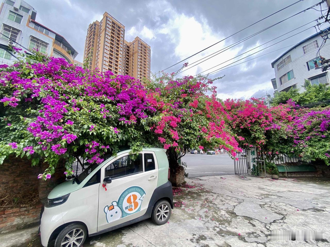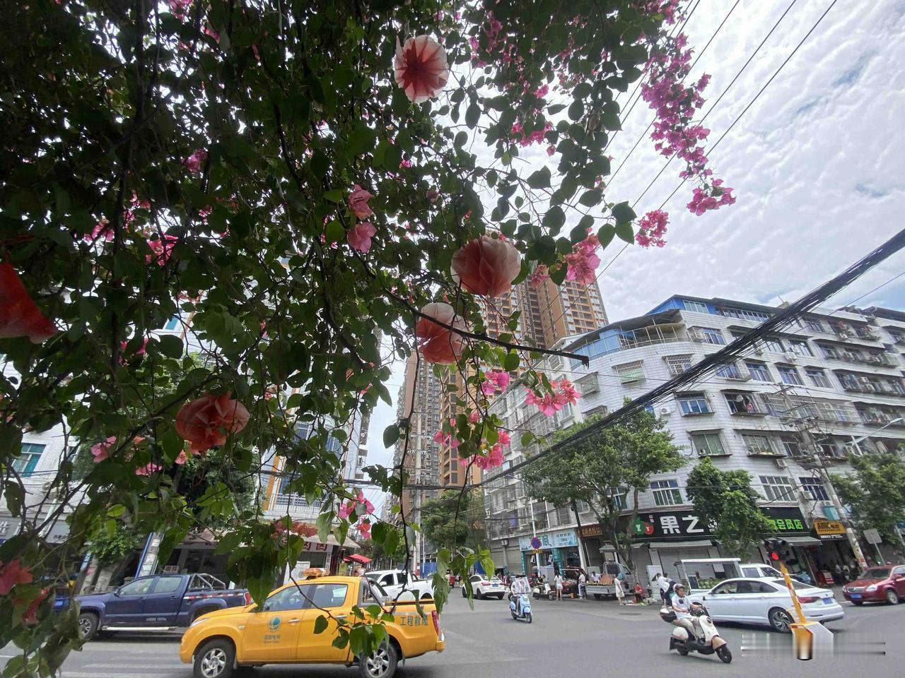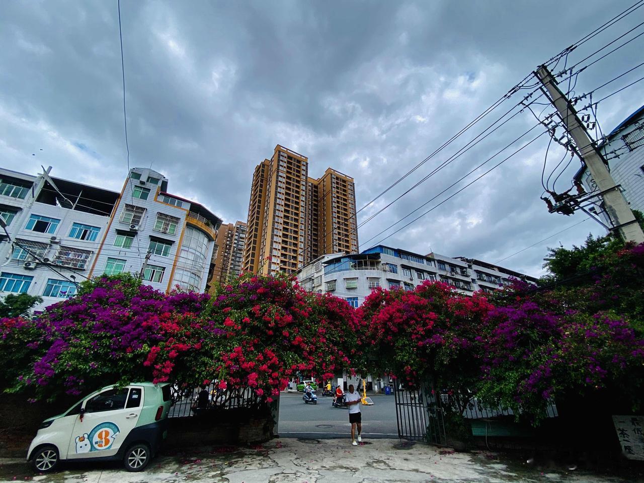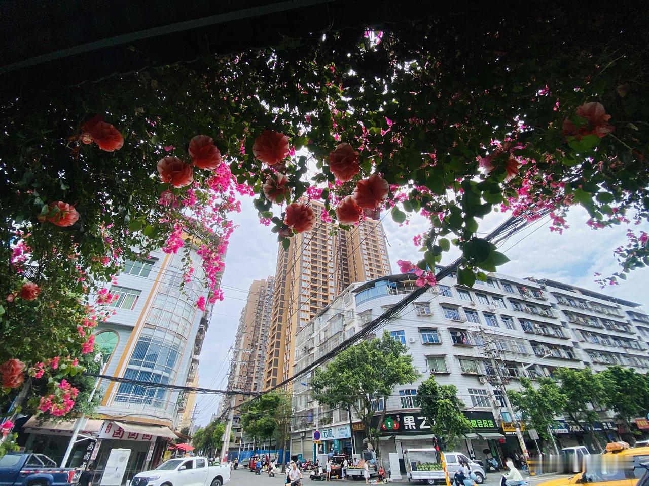 射洪紫薇街和太空路十字路口的张家院子,大门口有几株三角梅,感觉每个月都要爆花一次