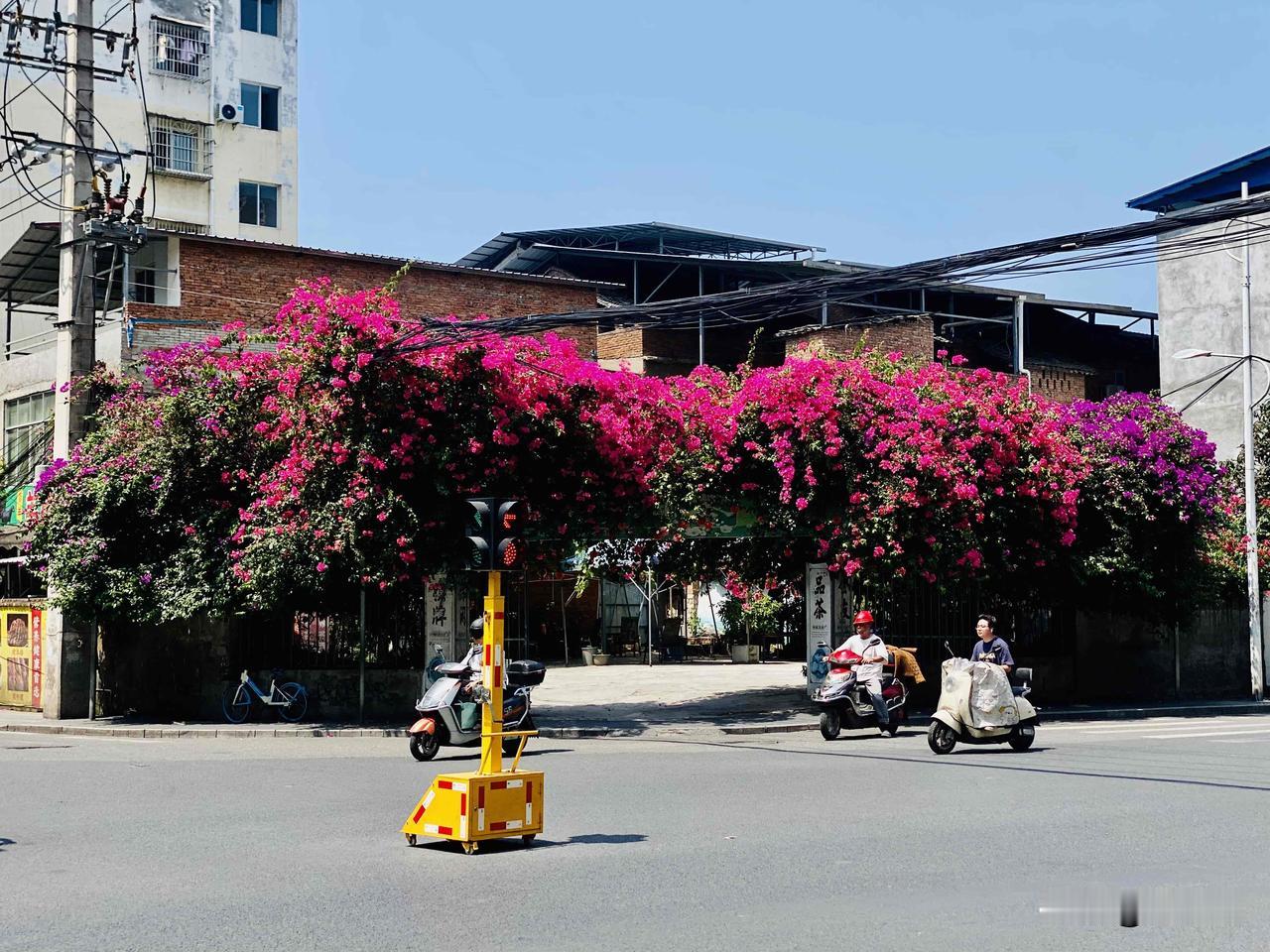 射洪紫薇街和太空路十字路口的张家院子,大门口有几株三角梅,感觉每个月都要爆花一次。 过路上下的人无不被瀑布般的花所吸引。去问老板花的养护心得,他总是骄傲地说,啥子都没管过,它自己就长得这么好了。 张家院子在城市化进程中,没有被拆迁,老板在院子里开了坝坝茶,等有机会也去花树下喝茶打瞌睡。射洪