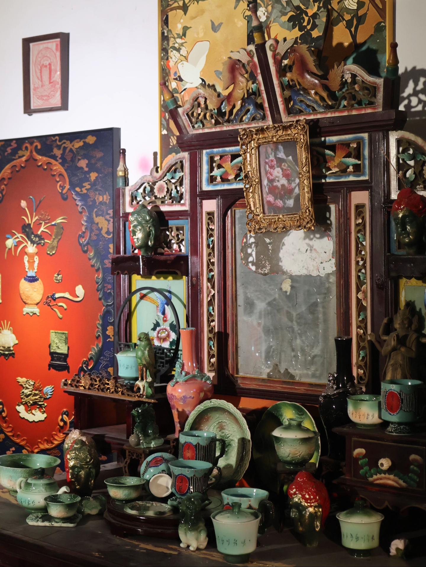 把古宅作工作室。搬新工作室后陆陆续续结缘了各种老家具和老物件,期间也不断产出瓷器和造像,新老物交错堆积在一起的瞬间,总是带来“跨时空的触碰”般美妙的幻象。