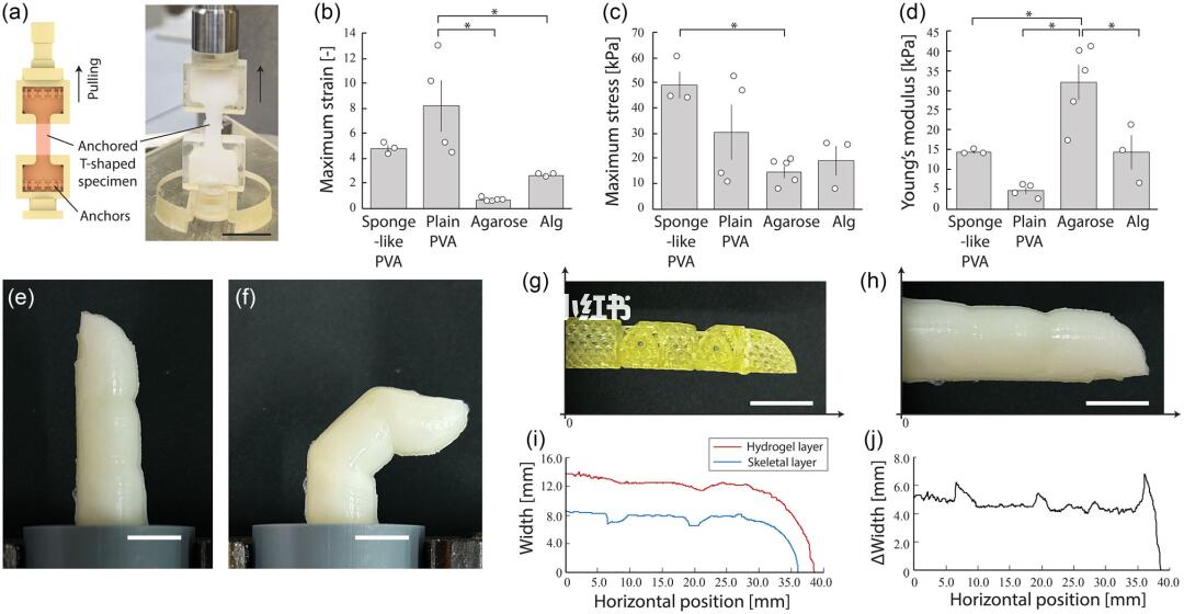 团队提出一种双层可渗透皮下支撑系统,该系统由多孔骨骼层和聚乙烯醇(PVA)制成的海绵状可渗透水凝胶层构成。通过3D打印技术制造的骨骼层设计有密集穿孔,在保障关节运动所需结构强度的同时允许液体流动。海绵状PVA水凝胶层支撑营养物质渗透,并在真皮层下方发挥机械缓冲作用。实验结果表明,该海绵状PVA水凝胶能有效保持水分并允许营养分子扩散,成功防止培养皮肤组织脱水。
