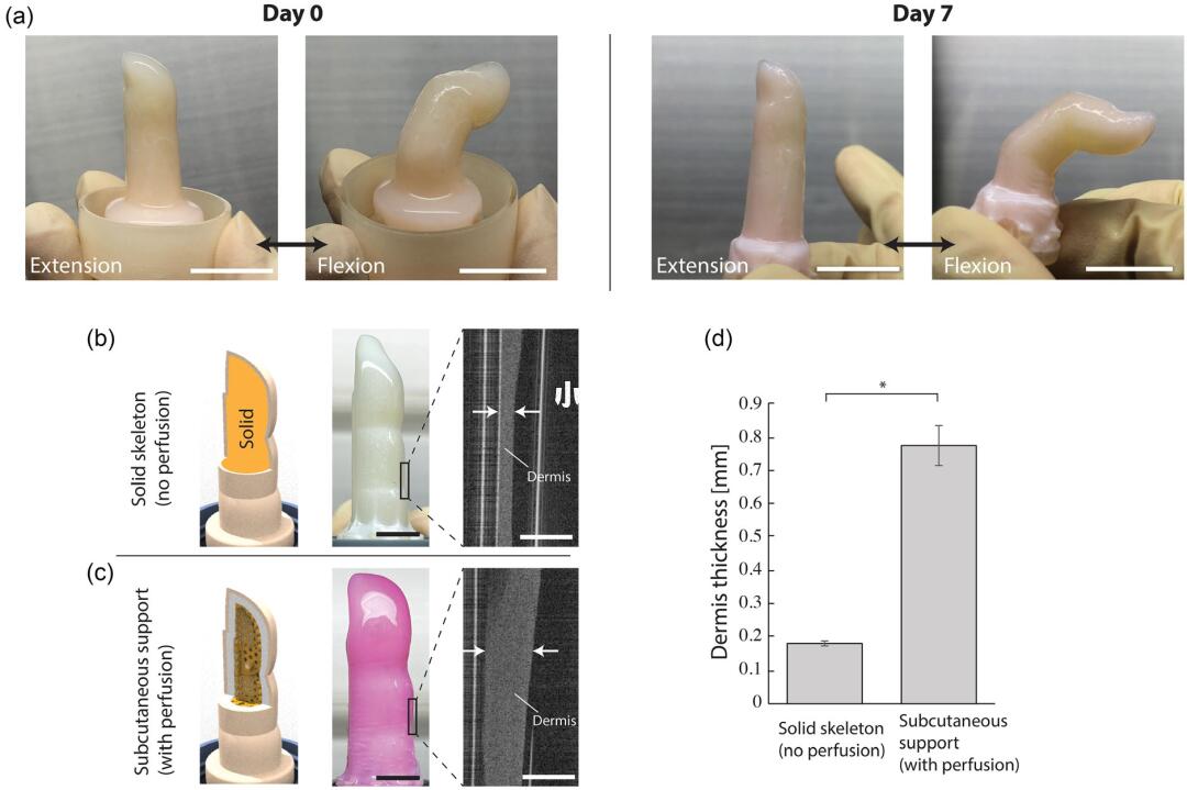 标题: Skin-Covered Biohybrid Robotic Finger with Bilayered Permeable Subcutaneous Support for Internal Hydration Supplement