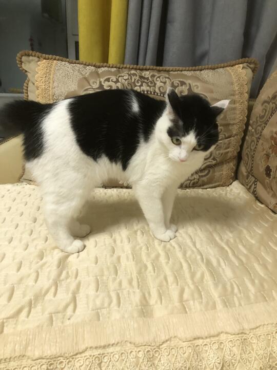 一只倔强的奶牛 想起来刚开始捡到元宝的时候看到它变身我真的很害怕 不知道它要干啥 现在我已经轻车熟路了 了解到奶牛猫就是会经常发神精的