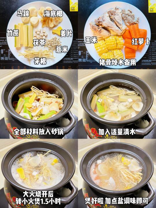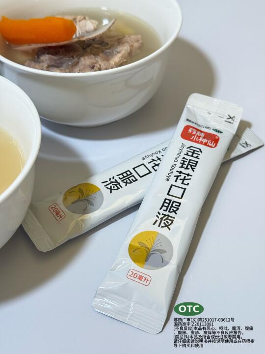 最近广东天气要把人晒晕了!🌞热到心烦~ 人内火旺盛就会烦躁!喉咙干燥疼痛,是时候煲靓汤饮啦~ [斜眼R]今天给大家分享一款(竹蔗茅根海底椰猪骨汤)这款汤具有清热解毒[飞吻R]润喉润肺[哇R]滋阴润燥!汤的味道清甜好喝,全是食材自带的甜味,一家大小都适合喝,四季皆宜,简单又有益[赞R] - 🍲食材: 竹蔗、茅根、马蹄、海底椰、红萝卜、玉米、薏米、茯苓、猪骨、姜片 - [清单R]做法: [一R]竹蔗洗净破开,玉米,红萝卜切块,猪骨焯水备用,其他材料冲洗干净 [二R]所有材料下入砂锅中,加入适量清水 [三R]大火烧开,转小火饱1.5小时,出锅前加入适量盐即可 - 如果平常不方便煲汤或者时间上不允许,可以用我们的传统中医来调理,这里推荐金银花口服液,清热解毒~ [两颗心R]小小一支随身带,吃香喝辣前来一条!就不用担心潇洒完吃上火的苦~ 这款金银花口服液是单方制剂,药寒性小不伤脾胃~ 很适合家中常备的救急和预防!同时不含蔗糖! 婴幼儿童,孕宝妈,糖尿病患者都可以喝[赞R] - 不论是风热感冒,喉咙痛,还是转季节性流感,熬夜[叹气R]上火,它都可以搞定[得意R]