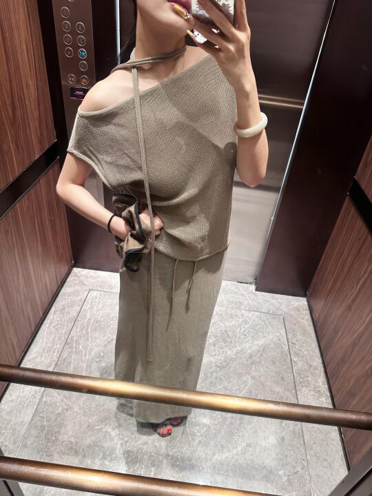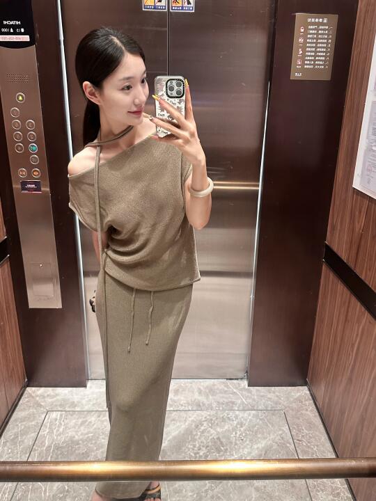 姐姐这身粉裙直接美到犯规!针织纹理把腰臀曲线勾勒得曲线毕露,削肩设计衬得脖颈修长