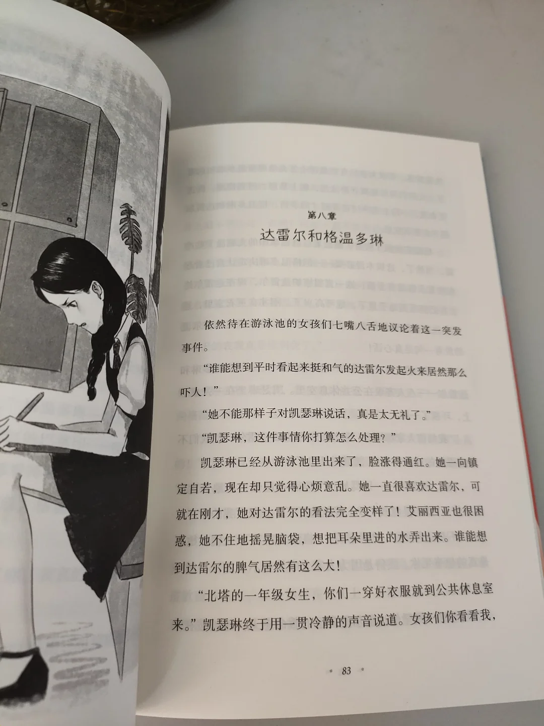 [哇R]《马洛塔学校》系列小说共六卷。首卷《新朋友》围绕一群初入海岛校园的一年级女生们展开。主人公是达雷尔,她天性直率善良、机敏、正义感强,和大多数同学打成一片,但成绩不容乐观。新结识的艾丽西亚,快言快语、爱说爱闹、口无遮拦,喜欢嘲笑和讥讽同学,好在成绩优异。达雷尔本想与艾丽西亚成为最好的朋友,但又看不惯艾丽西亚对待他人尖酸刻薄的态度。同期入校的格温多琳是头一次接受集体教育,在家中受妈妈宠爱,娇纵无理、自私自利、目中无人。萨莉刚入校时,沉默寡言、形单影只。玛丽-露,时刻警惕、胆小如鼠。在这四位性格迥然不同的女孩子们之间,发生了新生做弄法语老师、游泳池欺负人、玛丽-露病倒、摔断钢笔等曲折有趣的故事,仿佛读者也是其中一位同学,一起来亲历女孩们是如何处理矛盾、建立友谊的过程。
