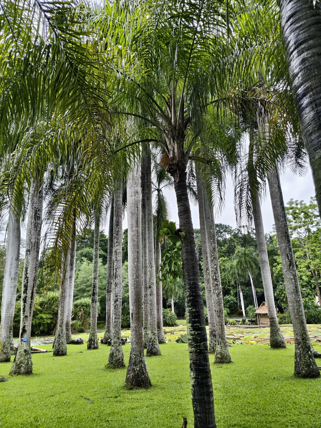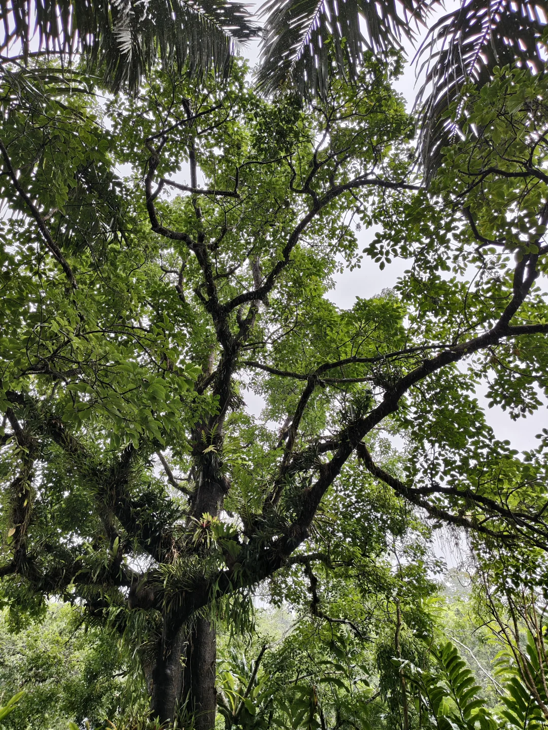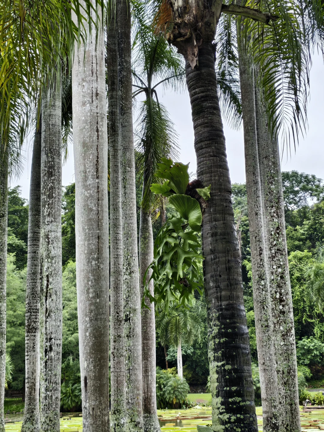 西双版纳植物园王莲池附近的很多棕榈树上都有鹿角蕨,凑近一看品相还真不错。部分有些黑脸,估计还是会雨水太多导致的,但冠长得很好。近期正值雨季,一天下几场雨,户外的鹿角蕨想必基部是用的树皮或者椰糠这种透气性极好的植料,而非水苔。