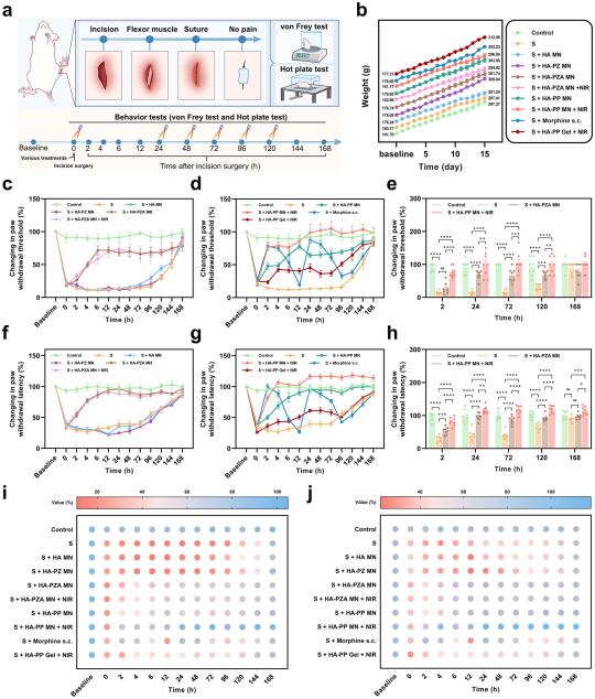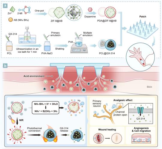 氢气能够在切口管理中发挥双重作用,武汉大学联合团队开发了一种新型的光热微针系统,通过持续释放氢气来缓解疼痛,并促进伤口愈合。