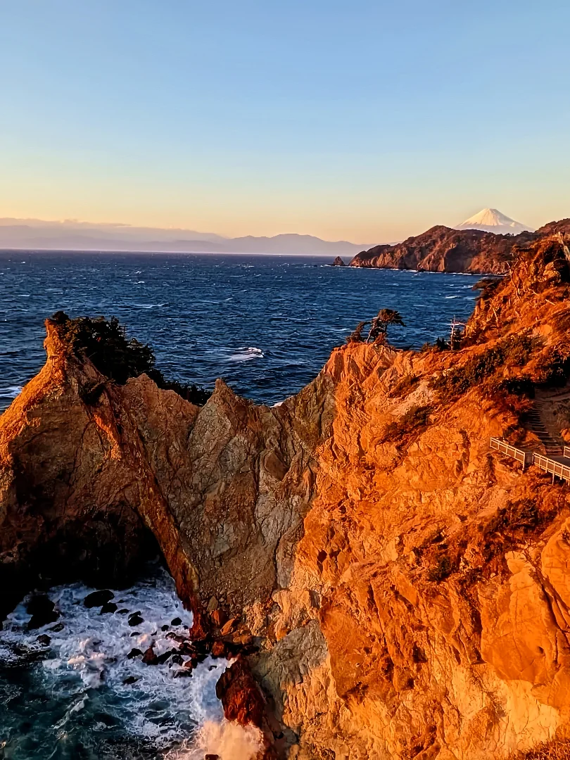 区域概念上西伊豆包括了松崎町、西伊豆町、土肥地区,沼津市。它的旁边就是小丸子的故乡!西伊豆的景色主打绝美日落海岸线~比东伊豆有个优势,那就是能看到富士山,⚠️而且是海景+富士山的组合~因为交通不便,所以知道这里的人很多,但是真的去过的还是少数!