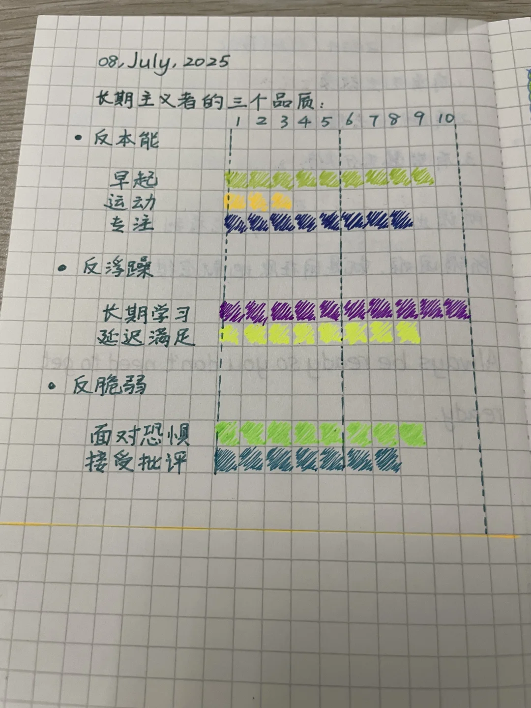 懒惰、浮躁和脆弱会让人变得越来越不自信 每天被各种消息和视频包围会让我找不到自己 只有慢下来, 字,一个一个地写 单词,一个一个地查 书,一句话一句话地读 缺点,一点一点地改变 慢慢地 早起的习惯持续了一天又一天 学习的渴望越来越强烈 内心越来越平静 无惧挑战与批评 因为我越来越清楚 真我究竟是什么样的