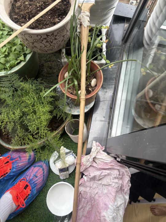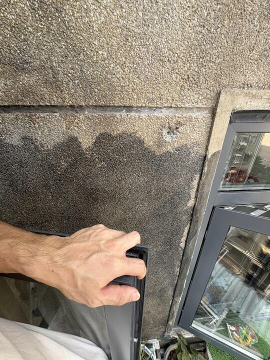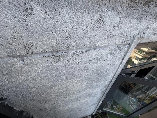 头两天发现的时候,内墙还没发黄,有一点鼓包,等早上楼上停空调了,晒一会外墙干了,内墙的鼓包就没了,然后赶紧去楼下买防水,网上也订购了品牌某邦的防水,准备刷两次,等下楼买到了赶紧爬外面花架上刷起来。图6-7可以看到是上次刷的效果,感觉有点作用,我甚至都把他家阳台这边的外墙全刷了[笑哭R]但是抵不住最近楼上空调不关机,天天24小时的流水。上去几次打招呼都没人开门[捂脸R]无奈写了小纸条!