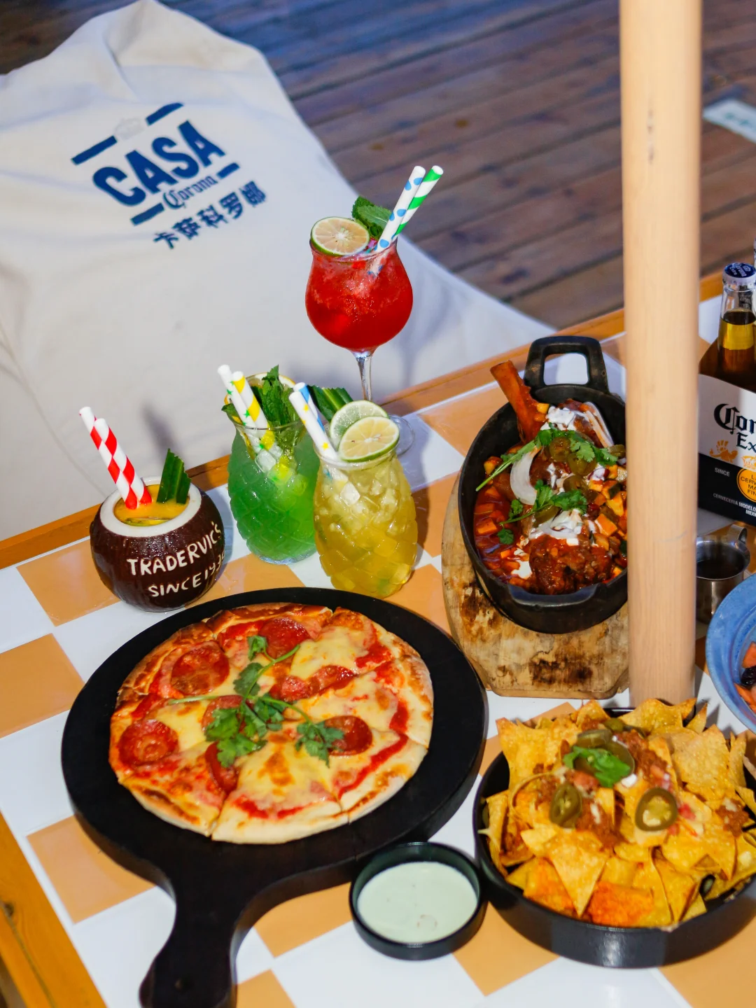 牛马的周末就应该来这里度假 尤其是在海边日落时享受🏖️ CASA CORONA·卡萨科罗娜[poi_v2] 这家CASA可以说是每次来神州半岛必打卡之地 - 在日落吧吹着海风吃着下午茶 🍕招牌披萨+沙拉+冰啤酒🍺 无需言语,人生惬意即是如此 - 现在晚上八点还有乐队驻唱啦 慵懒曲风,演奏chill感满满🪗 灯光和海浪便是夏日的催化剂 - 热烈的夏季不需要太多言语 享受即在当下🌊