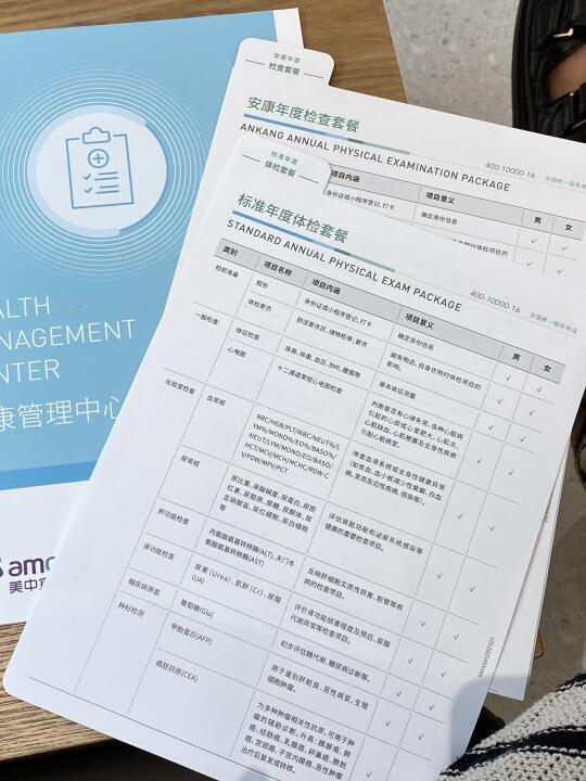 前前后后在网上翻了不少攻略,最后选了美中宜和的年度标准套餐。对比下来,项目全面,而且还是医院,如果真检查出什么结果,可以直接找大白看诊。