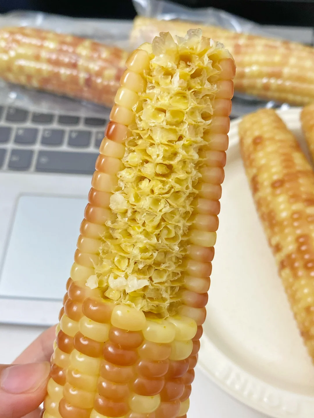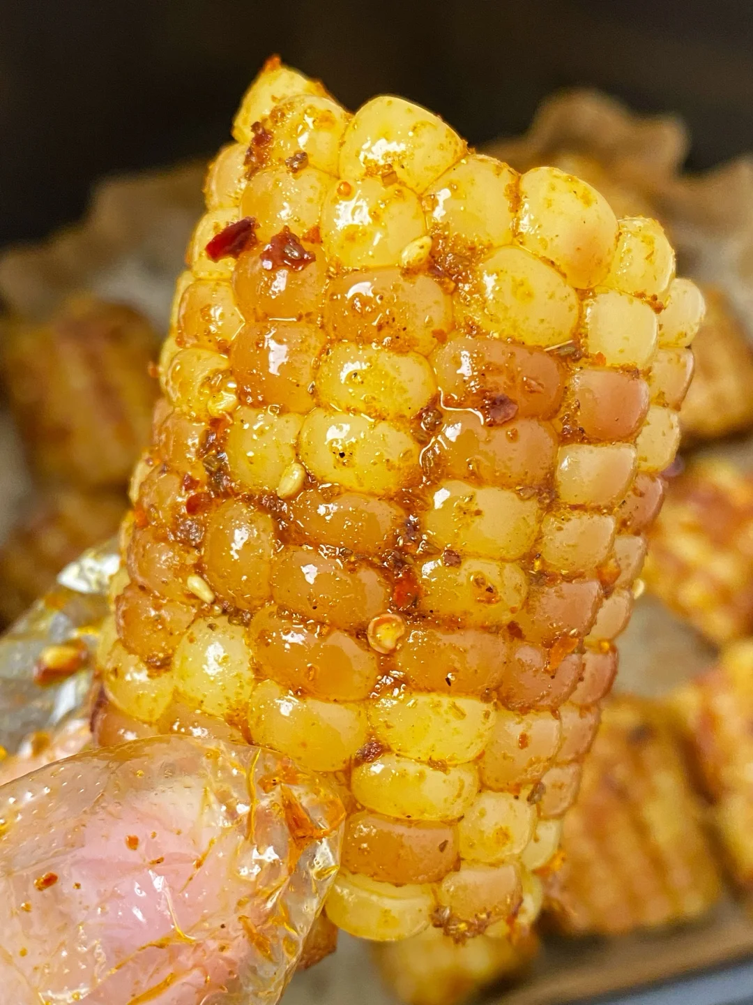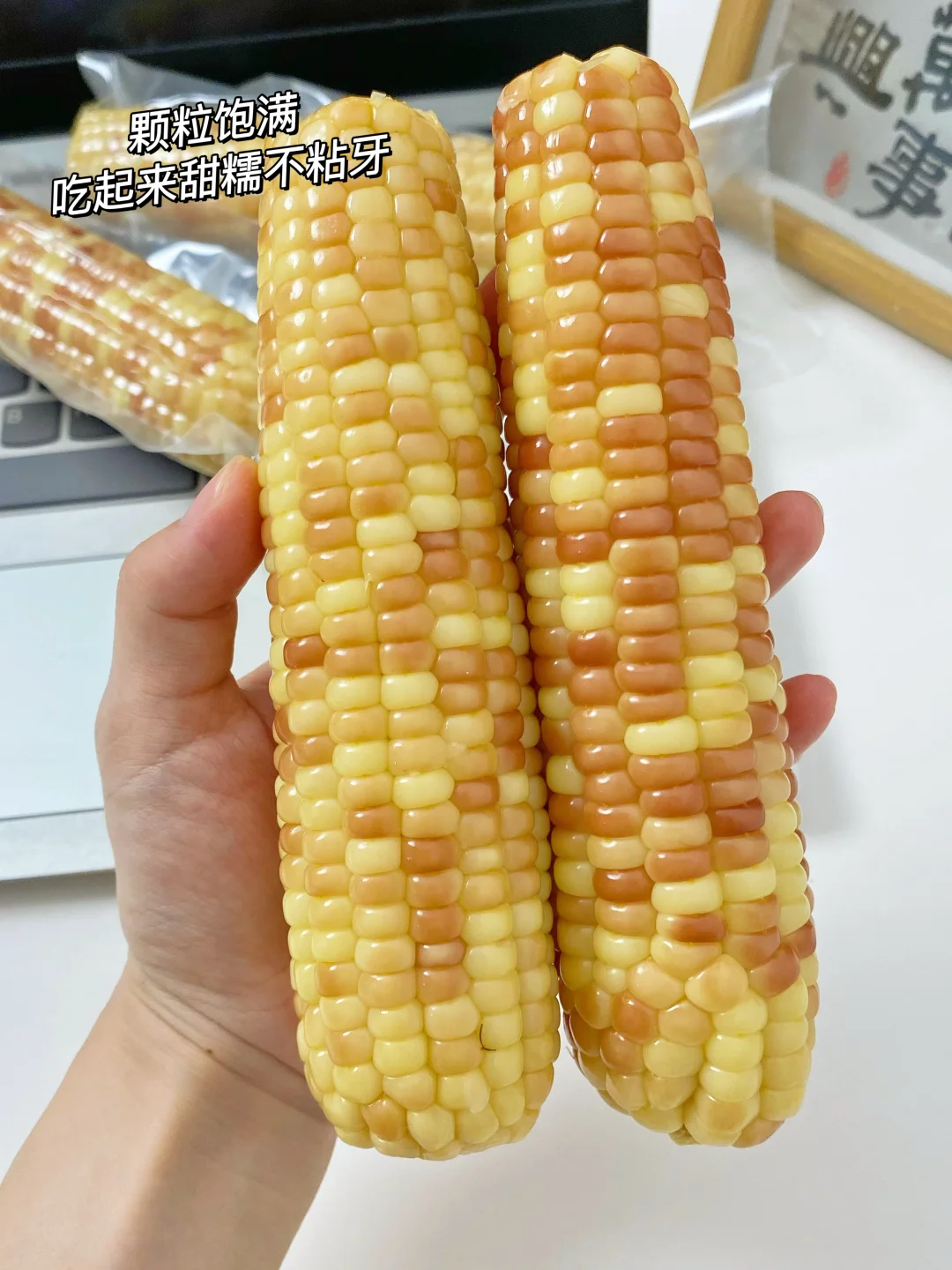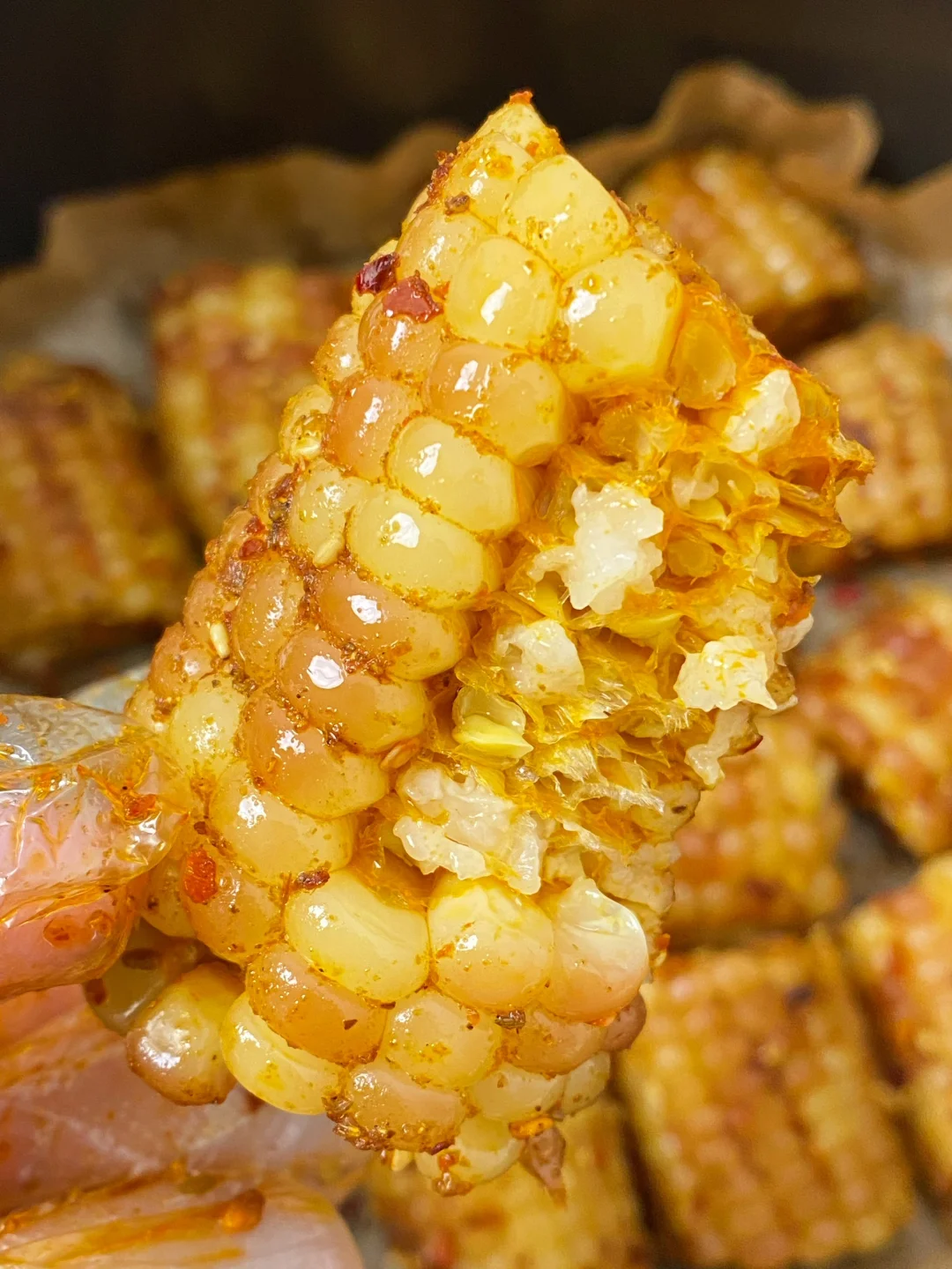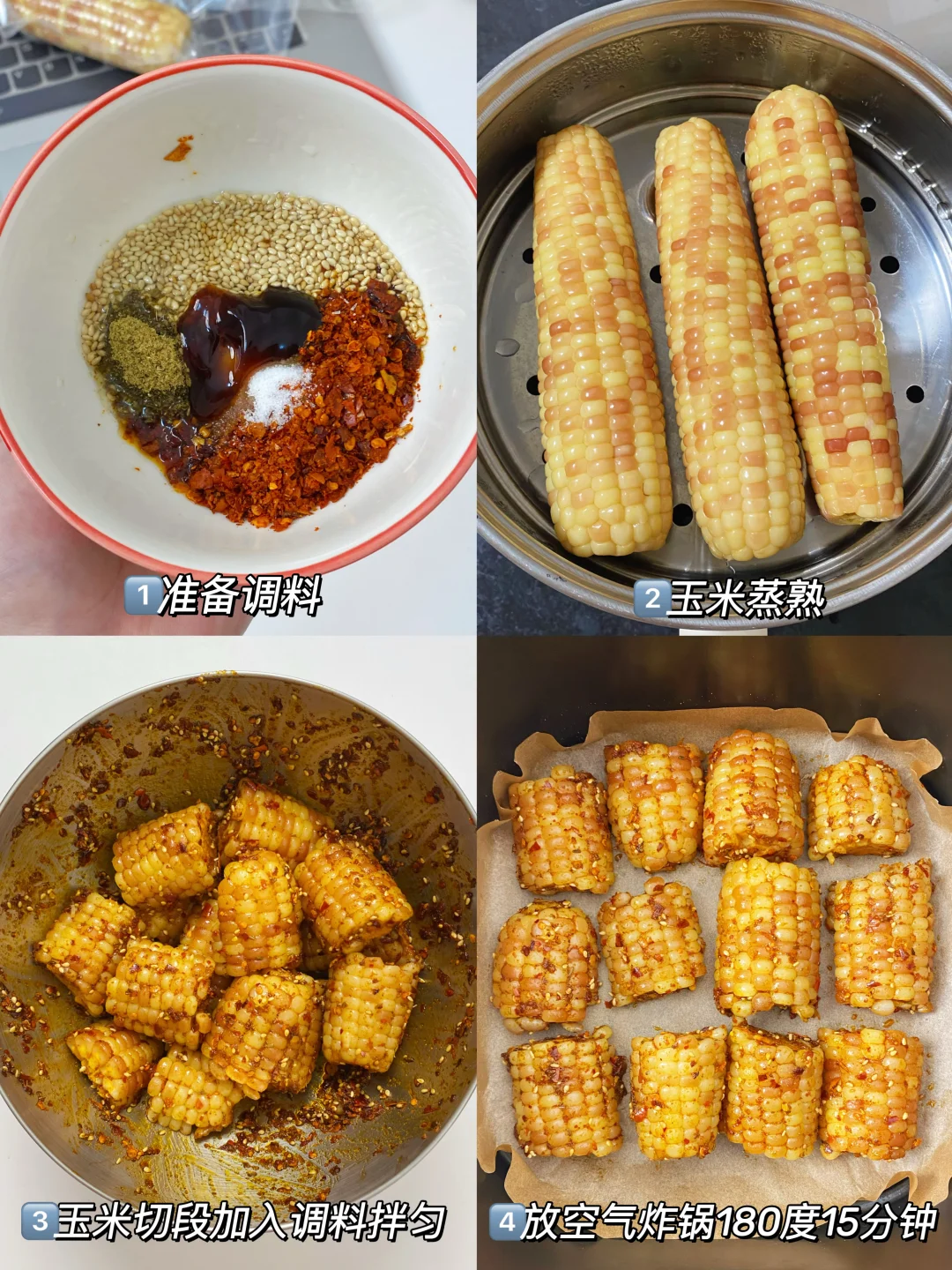 爱吃玉米的姐妹一定要试试,尊滴太香咯! 直接用空气炸锅就可以搞定,香辣过瘾,外面那一层皮烤的很有韧劲,里面糯叽叽的巨好吃😋用糯玉米会更好吃哦! 🥣调料:1勺孜然粉+1勺辣椒面+3勺油+1勺盐+1泵蚝油+1勺白芝麻 我用的是这个巴掌小花糯玉米,真空包装,个头小小的,每颗玉米粒都很饱满!吃起来软糯香甜,不会塞牙~ 早餐来上一根健康又饱腹,下个月发工资我还要再买两袋!