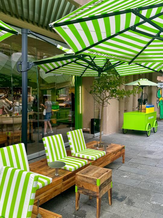 - 在新天地找到神仙新店了!😍 绿色条纹度假风真的太美了!绿植配沙滩椅,随手一拍都是ins风大片~ 恍惚间还以为在法国小镇度假!🏖️