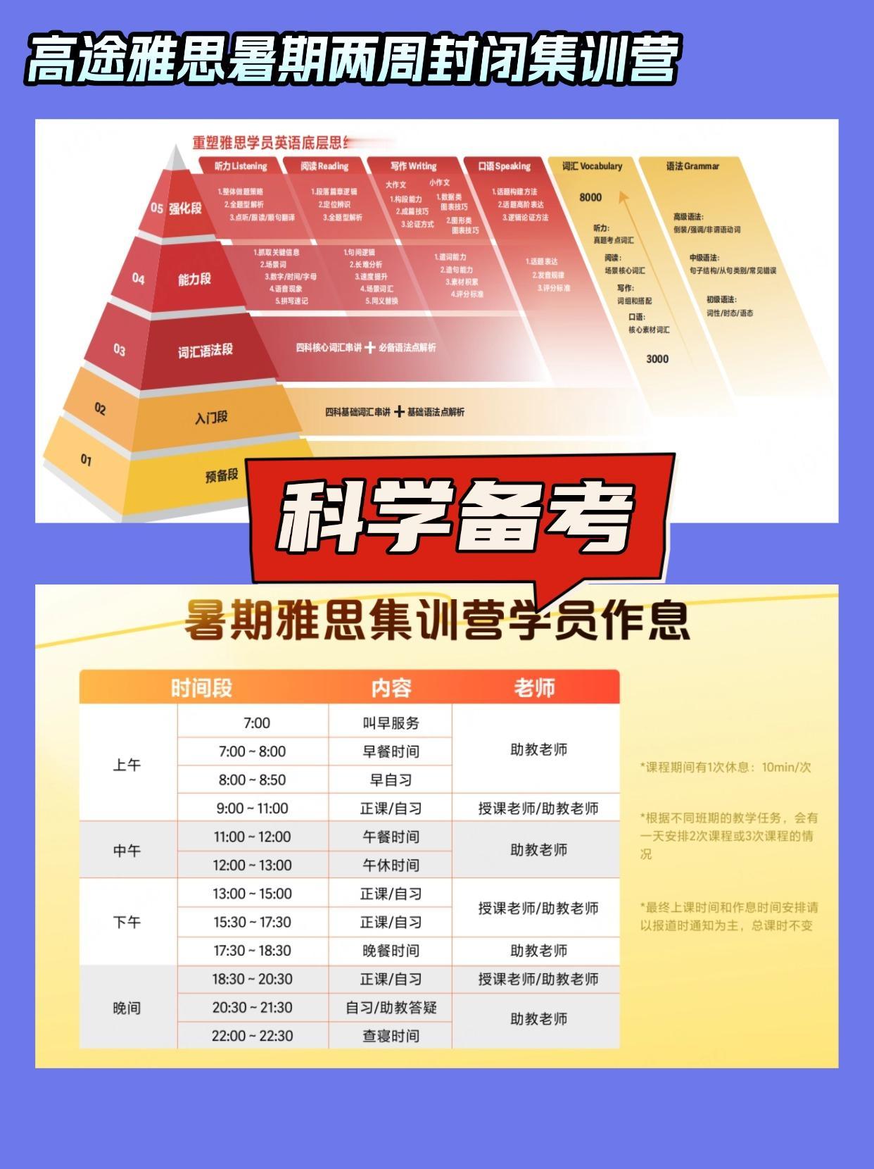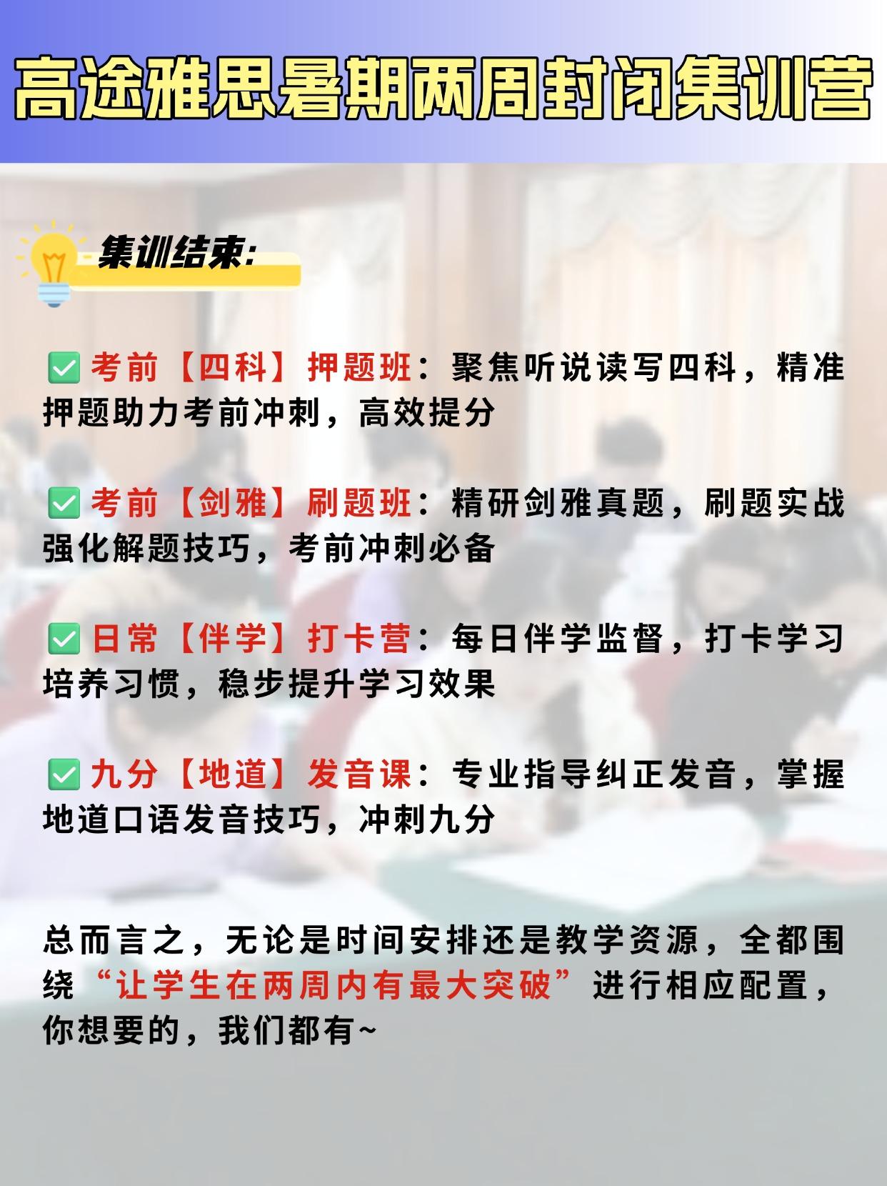两周集训来了!高途雅思青少集训营进行中! 一想到孩子学雅思就头疼?作为家长,您是否总忧心这些问题👇 . ‼️孩子手机不离手、社交诱惑多,书桌前坐两小时,有效学习不到半小时? ‼️刷了一堆题却模考 5.5,写作没人改、口语不敢说,分数总卡 6.5? ‼️听力差 0.5 分上 7,阅读 TFNG 题反复踩坑,偏科拖后腿? . 别急!高途雅思暑期封闭集训营专为青少定制:🎉 . ✅ 封闭式管理:吃住学一体,隔绝干扰,每天10+小时沉浸式学习 ✅小班教学:老师精准揪出薄弱点,课后答疑、写作逐段批改、口语1v1陪练 ✅ 顶配师资带队:海内外硕博牛师亲授雅思考场技巧,每日计划定制+课后答疑 . 这个暑假,用两周时间告别无效备考!✍️专业团队带你家孩子攻克瓶颈,分数提升看得见🙋 —— 不费家长心力,孩子直接拿下理想雅思分!💯 . 雅思高途英语学习雅思[超话] 🎁报名福利别错过 前 15 名回复暗号【集训营】添加可领: 🌟2000元优惠券 🌟 雅思口语预测资料 🌟资深名师免费定制学习方案