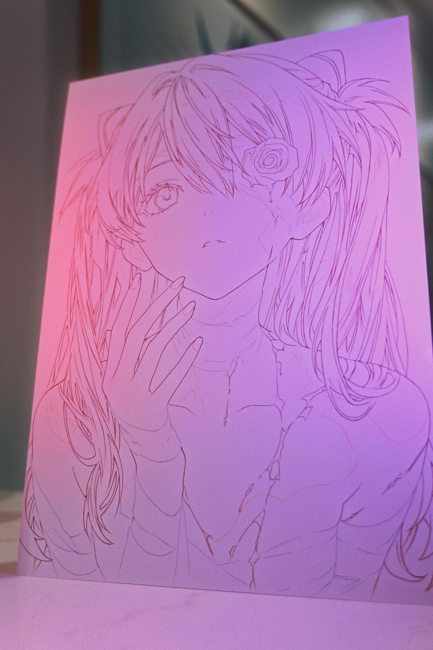 EVA明日香手绘线稿。画的真的蛮久的