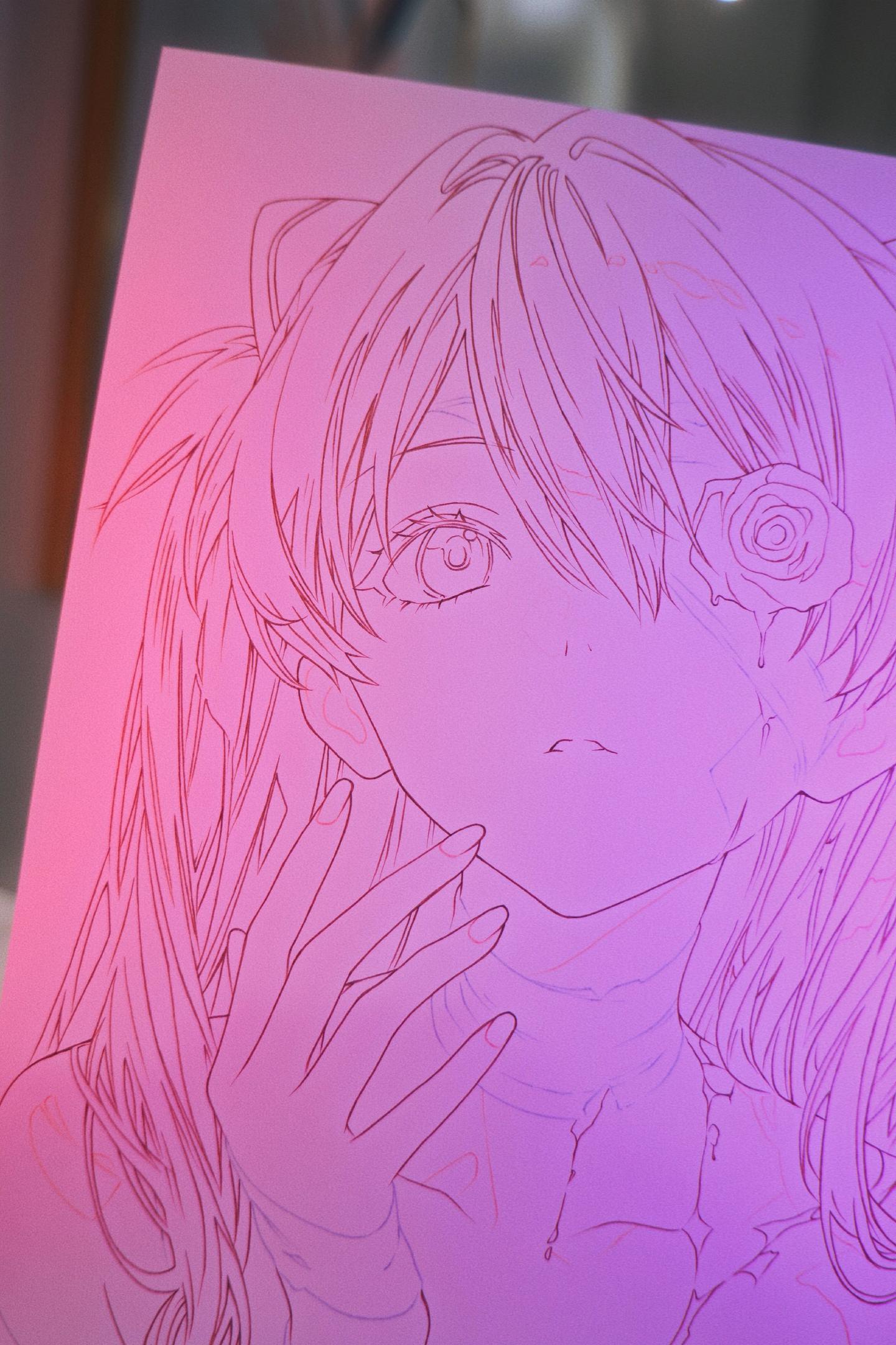 EVA明日香手绘过程图 原画kuma绘。