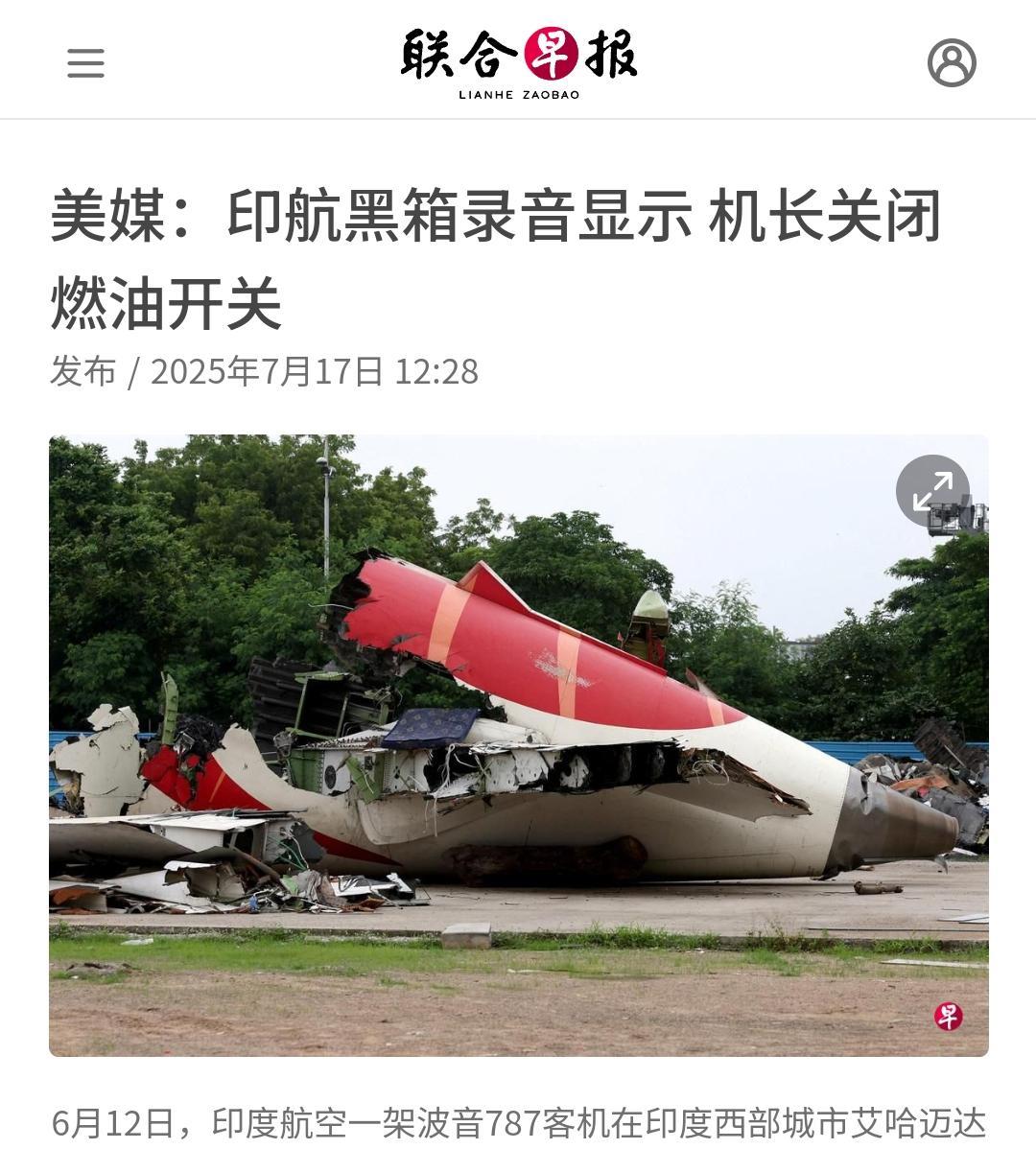 吃相太难看了 ! 《华尔街日报》又帮波音甩锅?综合看过中英文报道后,简直想吐! 黑匣子录音内容明明显示:一名飞行员询问另一人“为何切断燃油供应”,对方回答“我没有操作”。 然而最新消息(7月17日)已经变成:“美方调查评估认为机长亲手关闭了两台发动机的燃油开关,导致发动机熄火,这一操作被认定为坠机的直接原因。” ——与黑匣子的对话记录完全是两幅场景!! 看了一些专业人士的质疑,觉得很玄妙: 他们认为,燃油阀门并不是“一键按钮”,藏在膝盖后,操作得“拉起来+拧半圈”,你告诉我误碰能关双引擎?而同款787去年也曝出油箱传感器失灵,系统连“误关阀”都不拦截,这锅难道不该设计来背吗? 此外,两位机长并不是菜鸟,机长(56岁),有15,000小时飞行经验,执飞波音787时长超8,500小时;32岁副驾也有3,400小时飞行经验,事发前两人均通过酒精测试且状态正常。 虽然我们真的很烦三哥,那更反感恶意甩锅的小孬孬行为——每次空难都复刻同款剧本: 波音每次出事,总有人默契地把箭头扭向“倒霉蛋飞行员”,而真正的巨头在通稿里悄悄“技术性无责”。这哪是调查报道?分明是递刀产业链! 不过从这条新闻,我们再次验证:没有所谓的第四权,主流媒体正时刻准备着成为资本的防弹衣! Source: FB