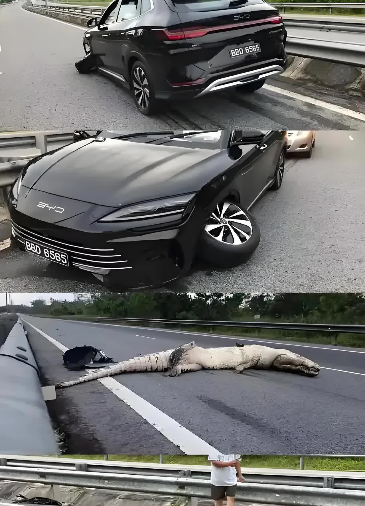 600斤的大鳄不敌海狮。 近期一条重约600多斤的大湾鳄横穿马路时,被比亚迪海狮高速拦腰碾过,结果海狮主体完好,只是受点皮外伤,而大鳄却一命呜呼。 看来比亚迪的质量是杠杠的,换作其他车,后果如何请大家脑补。