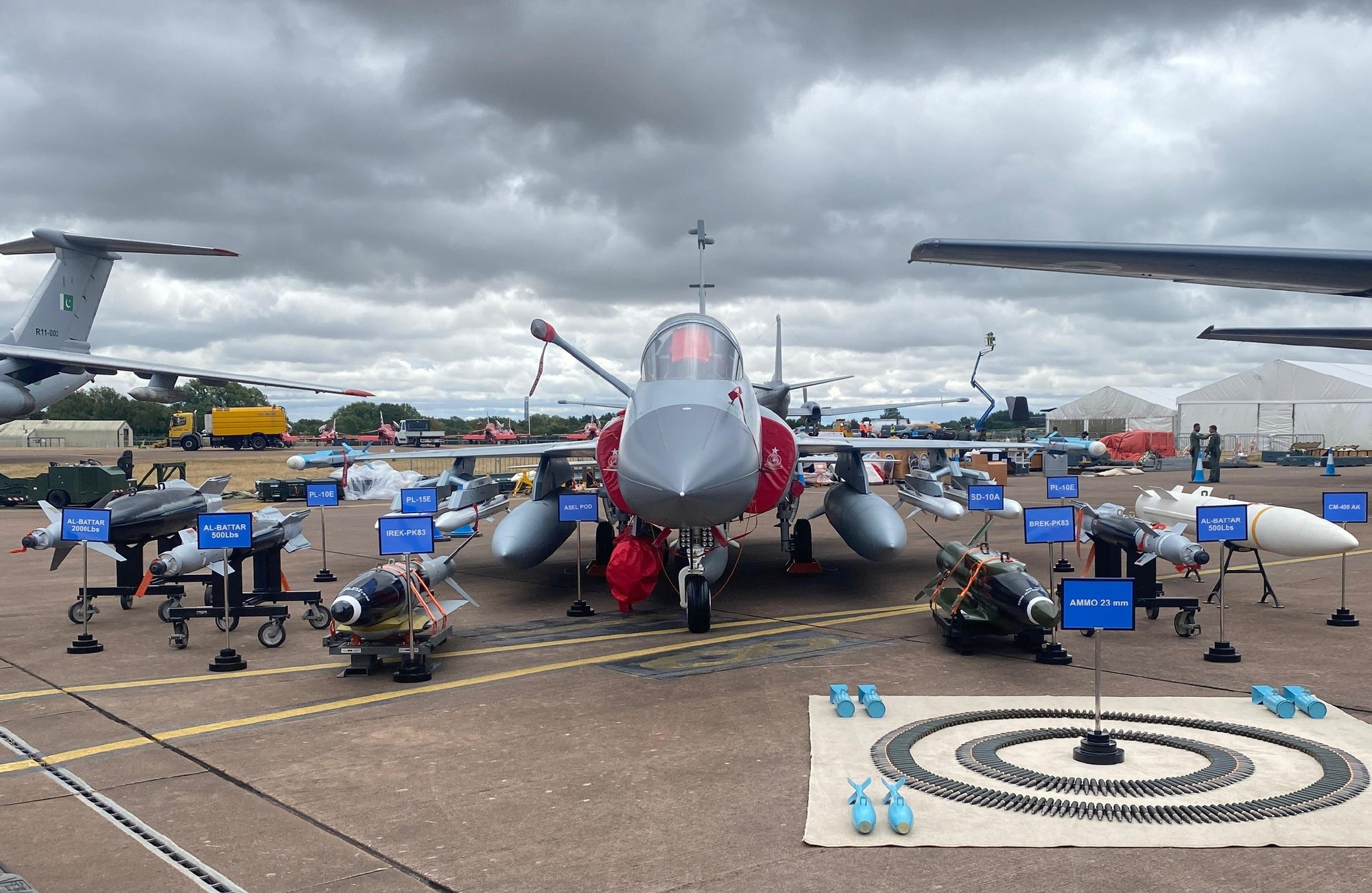 JF-17“枭龙”带着个性纹身,大老远前往参加英国皇家国际航空纹身会(RIAT 2025),虽然和各国先进战机同台展示成为常态。不过这次它带着PL-10E、PL-15E空空导弹实弹,特别是PL-15E前不久才打下“阵风”,这可是难得一见的真家伙,在欧洲出现势必成为明星。 作为一款多用途战斗机,它还能实施对地反舰作战,所以随机还配了CM-400AK超音速空地导弹。“枭龙”当年定位只是款轻型战斗机,越改越先进成了歼-10C有力助手,而且在多年服役中已经拥有大量实战经验。体系作战中歼-10C可以轻松打下“阵风”,其实换成“枭龙”估计战果也类似,重点价格更便宜中小国家可以大量装备,就当出门参展给潜在客户打打广告。