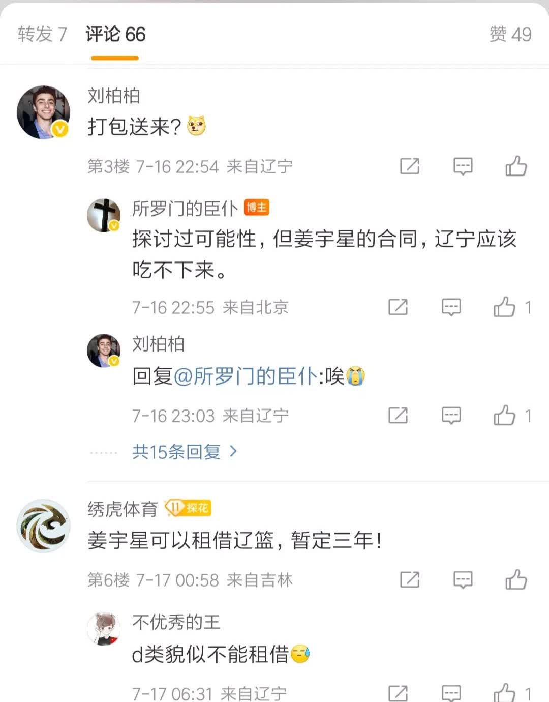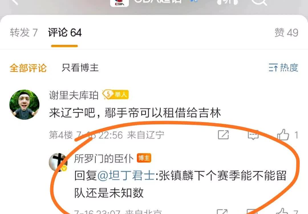 啥意思,没看明白,张镇麟与辽篮的合同到期就要走人嘛? 媒体人所罗门门仆回应辽宁球迷的“辽篮如果D类合同签姜宇星,那张镇麟怎么办,辽宁队已经用完三个D类顶薪”的疑问,他表示,张镇麟下赛季能不能留队还是未知数,而且辽宁队也吃不下姜宇星的D类合同。他的意思大概就是张镇麟的B类合同到期后将会向俱乐部提交申请交易。按我的推测,估计张镇麟可能会选择去广东打球,毕竟老婆就在广东深圳,对张镇麟而言,他在广东打球方便他照顾家庭!