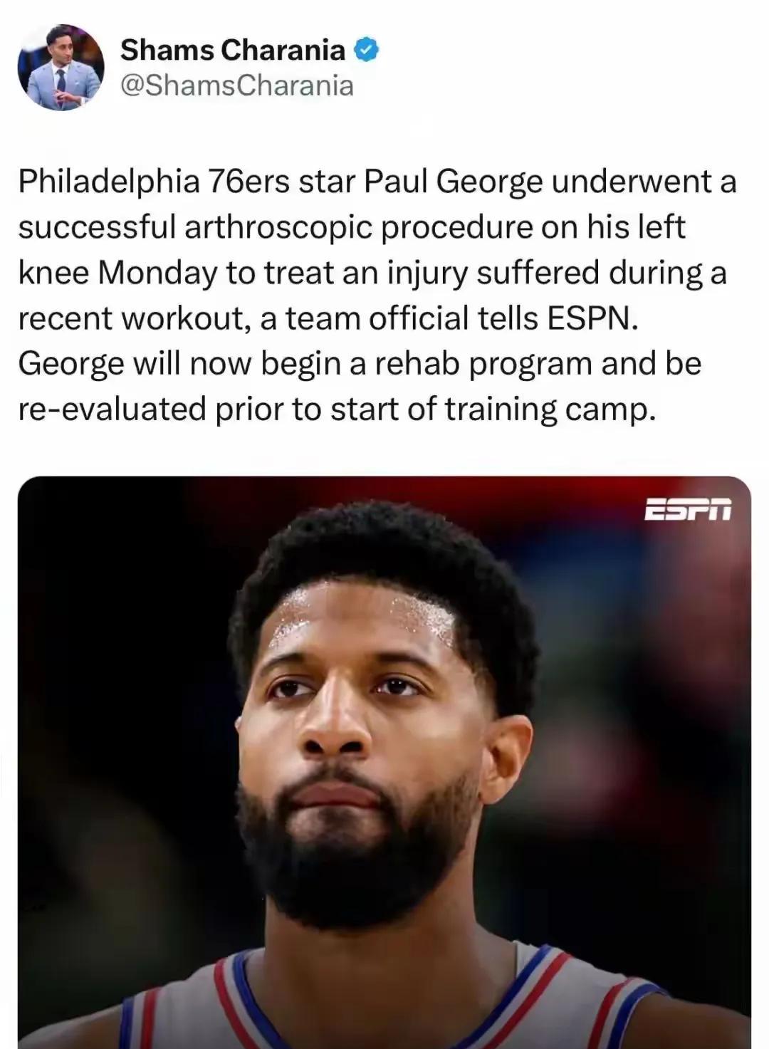 76人真是冤大头:保罗.乔治接受手术 据ESPN报道,76人球星保罗.乔治刚刚接受了左脚踝手术,乔治是在2024年夏天以自由球员身份加盟76人的,合同为4年2.2亿美元,拥有乔治、恩比德和马克西三巨头的76人队一度被认为是争冠热门,结果,乔治在出场41场比赛后就因膝盖伤势赛季报销,再加上4月份恩比德的赛季报销,76人得争冠之路彻底断送。 更令人气愤的是,保罗.乔治在3月份受伤以来一直都在“静静养伤”,出现在球迷视野中最多的画面就是保罗带着女友度假的照片,而新赛季即将开始之际,保罗居然又选择了手术,这让他在新赛季的复出再次蒙上阴影,保罗.乔治还剩余3年1.52亿美元的合同,这就是要躺着把钱赚了啊,对于76人来说,可真是冤大头了。